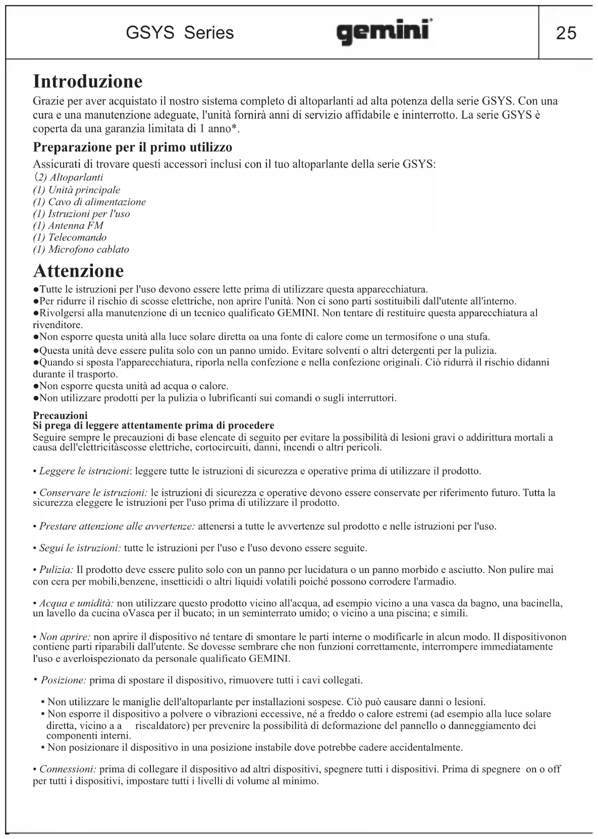 GSYS-4800 - Altoparlante GEMINI - Manuale utente e istruzioni gratuiti
