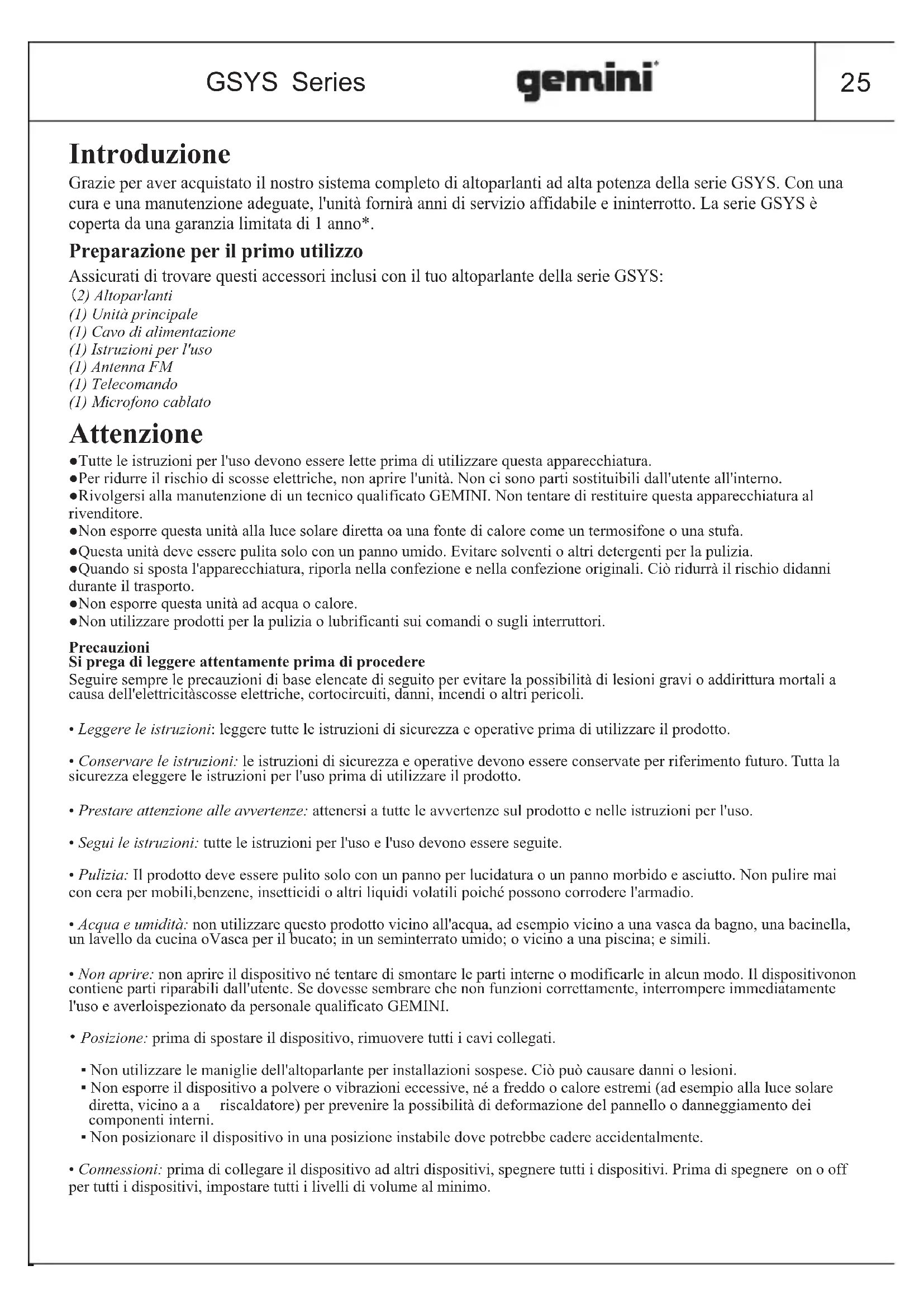 GSYS-2400 - Altoparlante GEMINI - Manuale utente e istruzioni gratuiti