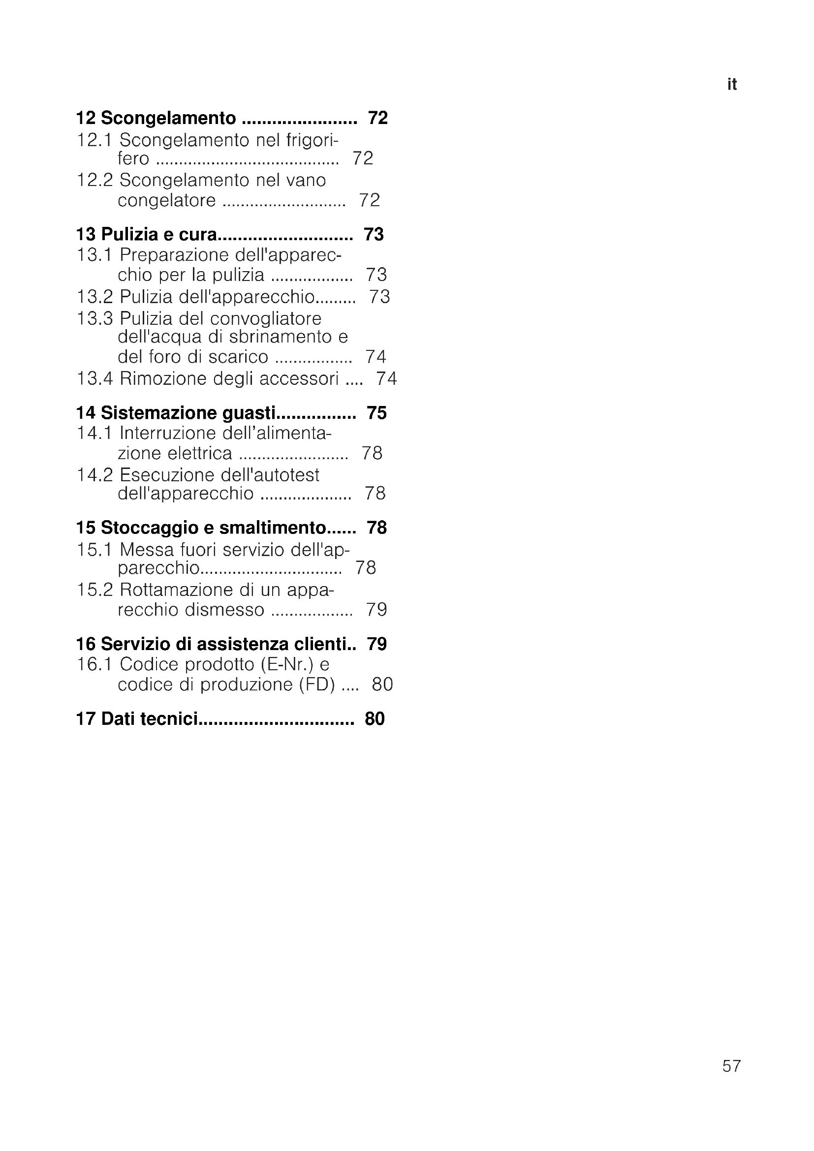 congelatore ........................... 72 13 Pulizia e cura...........................73