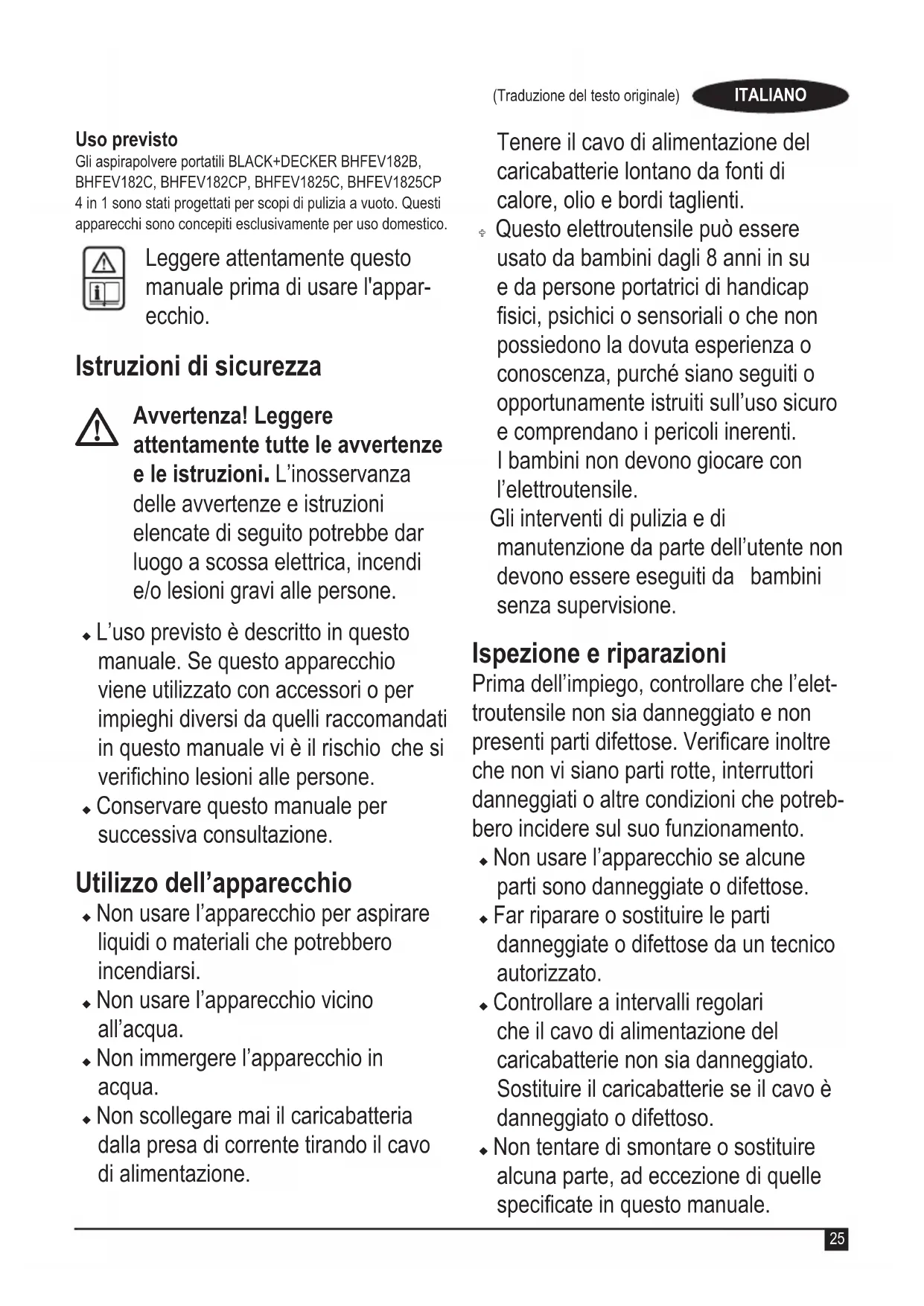 MANUALE UTENTE BHFEV1825C BLACK & DECKER