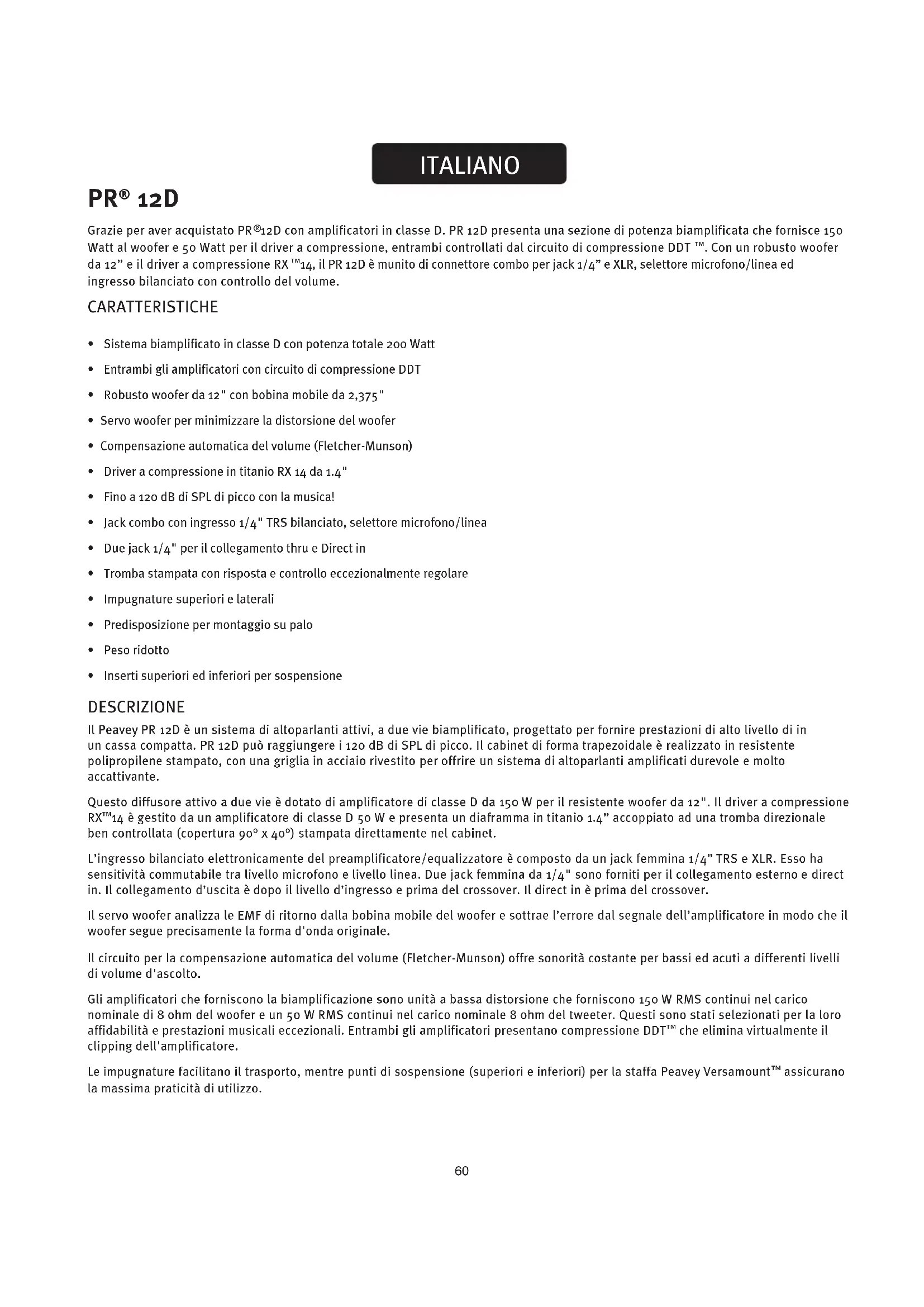 Scarica le istruzioni per il tuo Non categorizzato in formato PDF gratuitamente! Trova il tuo manuale PR 12D - PEAVEY e riprendi in mano il tuo dispositivo elettronico. In questa pagina sono pubblicati tutti i documenti necessari per l'utilizzo del tuo dispositivo. PR 12D del marchio PEAVEY.