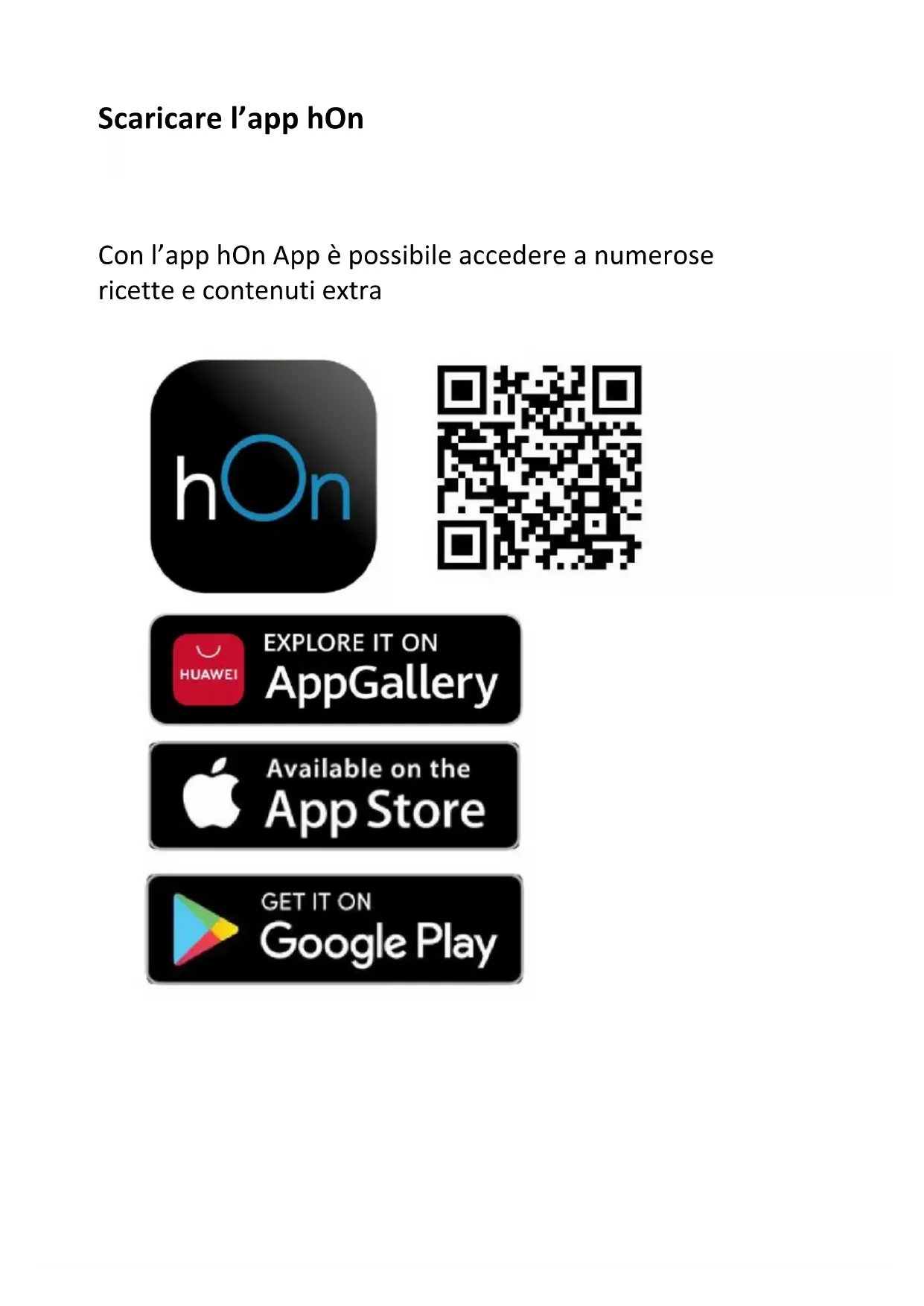All'elettrodomestico è affisso il simbolo di conformità alla Direttiva europea 2012/19/CE in materia di smaltimento di rifiuti di apparecchiature elettriche ed elettroniche (RAEE). Garantendo il corretto smaltimento dell'elettrodomestico, è possibile evitare possibili danni all'ambiente e alla salute umana causati dallo smaltimento inappropriato. Il simbolo sul prodotto indica che non può essere smaltito come rifiuto domestico normale. Il prodotto deve essere conferito in un punto di raccolta per il riciclo delle apparecchiature elettriche ed elettroniche. Questo elettrodomestico richiede uno smaltimento rifiuti specialistico. Per ulteriori informazioni sul trattamento, il recupero e il riciclo di questo prodotto, rivolgersi all'ente locale competente, all'azienda addetta allo smaltimento dei rifiuti domestici o al rivenditore da cui è stato acquistato. Per informazioni più dettagliate sul trattamento, il recupero e il riciclo di questo prodotto, rivolgersi all'ente locale competente, all'azienda addetta allo smaltimento dei rifiuti domestici o al negozio dove è stato acquistato. SMALTIMENTO: non smaltire questo prodotto tra i rifiuti indifferenziati. Questi tipi di rifiuti devono essere raccolti separatamente per un trattamento speciale. L-N: 220 - 240V ~ L1-L2: 380 - 415V ~Download de hOn-app In de hOn-app heeft u toegang tot verschillende recepten en extra informatie106
