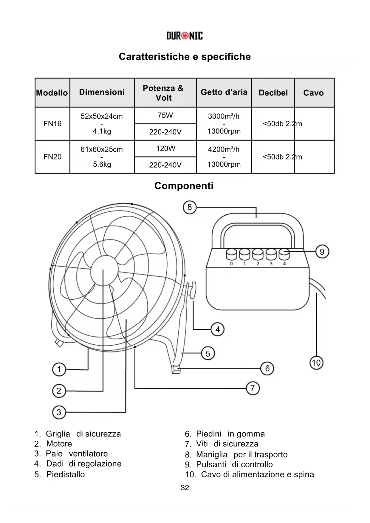 MANUALE UTENTE FN16 Duronic