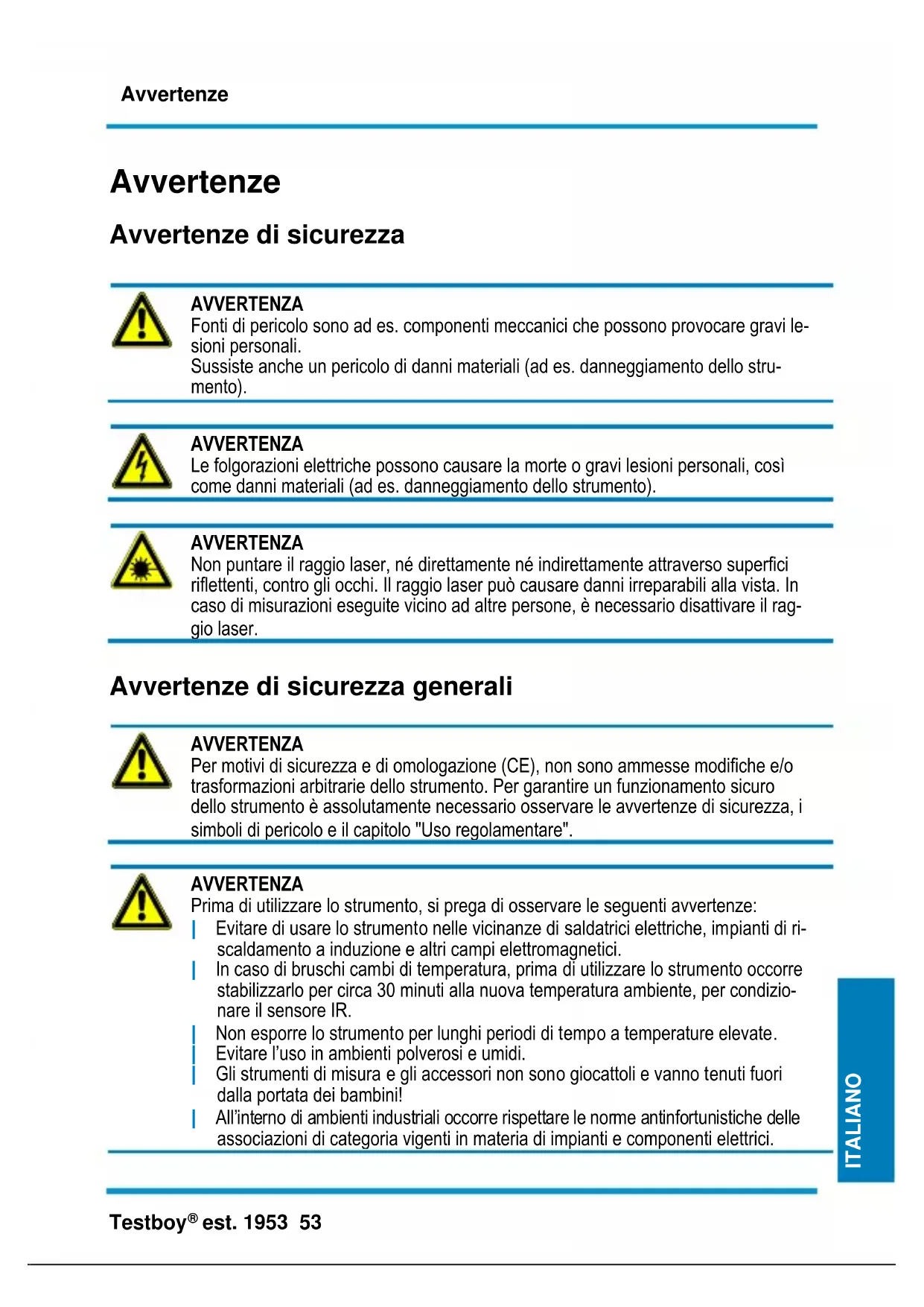 est. 1953 53 ITALIANO ITALIANO ITALIANO Avvertenze Avvertenze di sicurezza