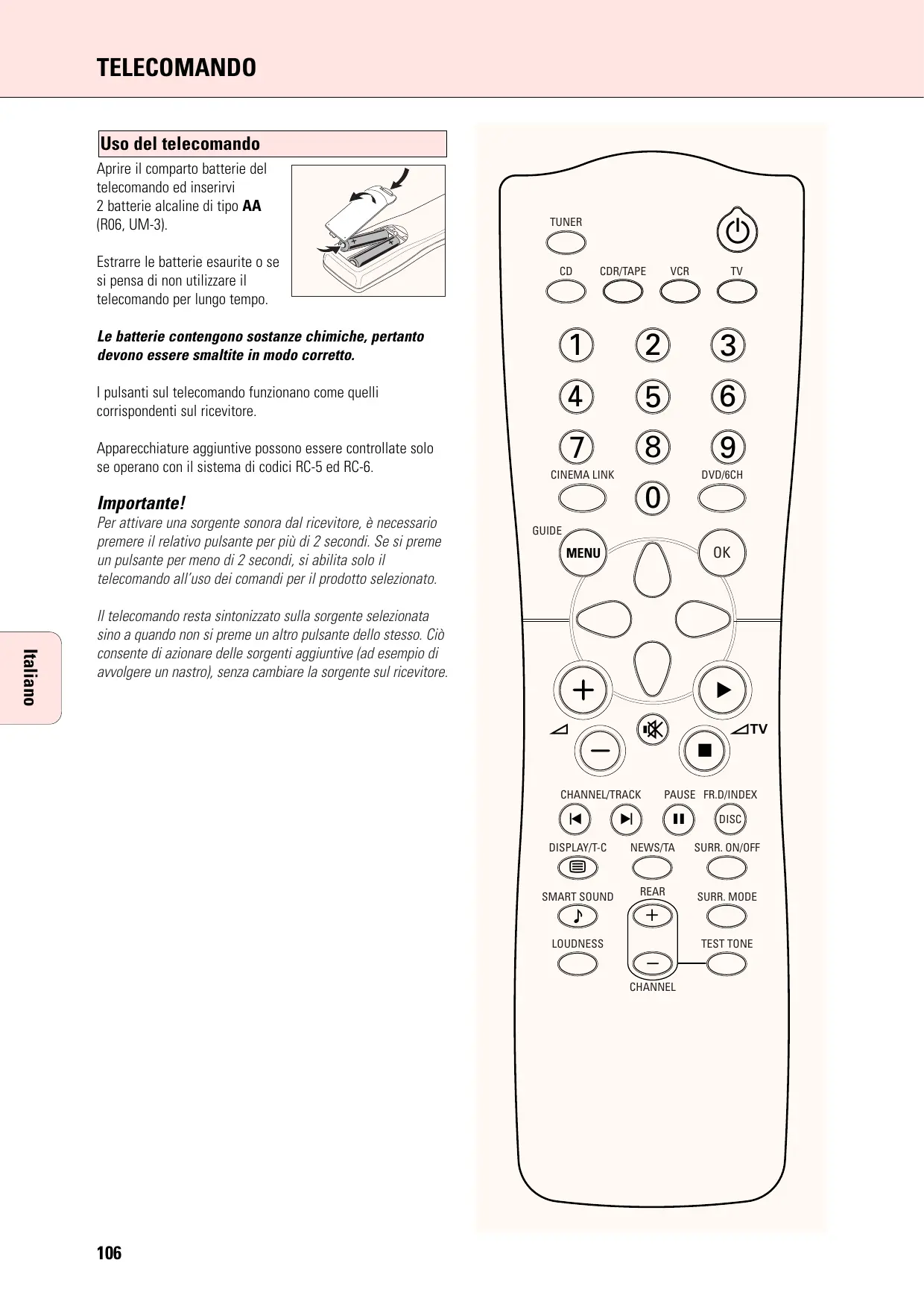 Uso del telecomando 106