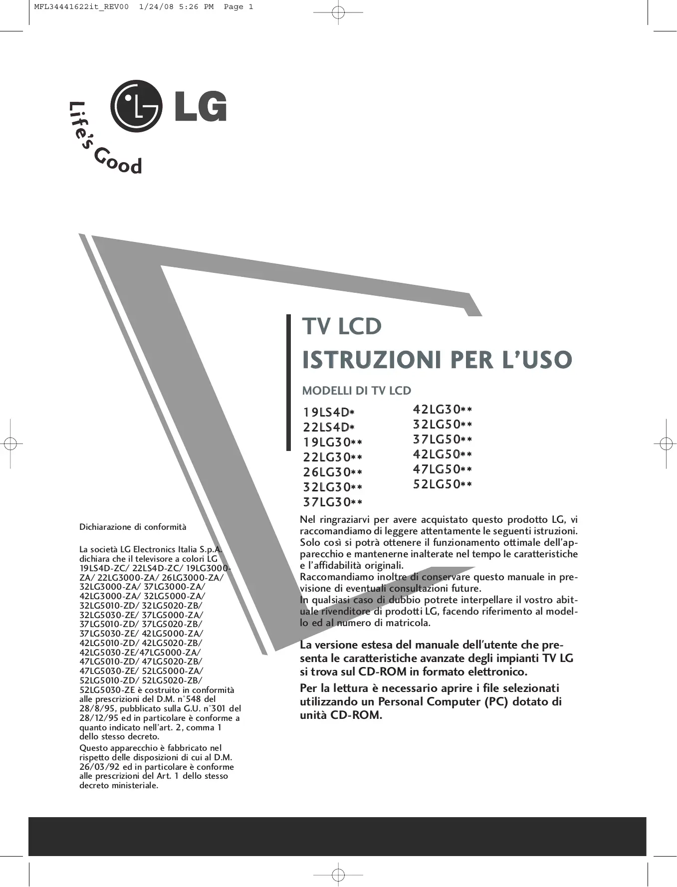 Scarica le istruzioni per il tuo Televisore in formato PDF gratuitamente! Trova il tuo manuale 37300C.AEU - LG e riprendi in mano il tuo dispositivo elettronico. In questa pagina sono pubblicati tutti i documenti necessari per l'utilizzo del tuo dispositivo. 37300C.AEU del marchio LG.