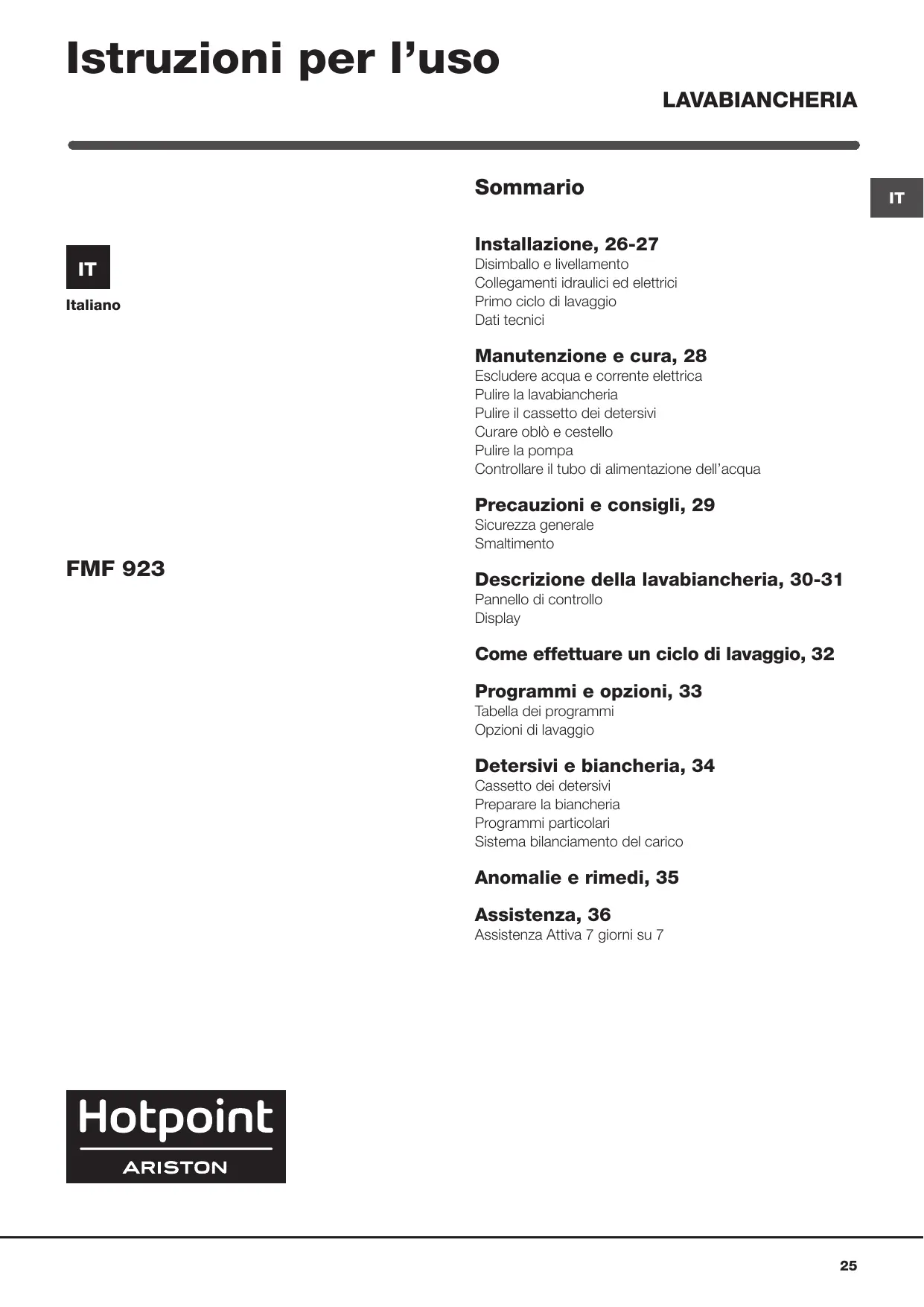 Trova gratuitamente il manuale del dispositivo FMF 923K EU HOTPOINT in formato PDF.