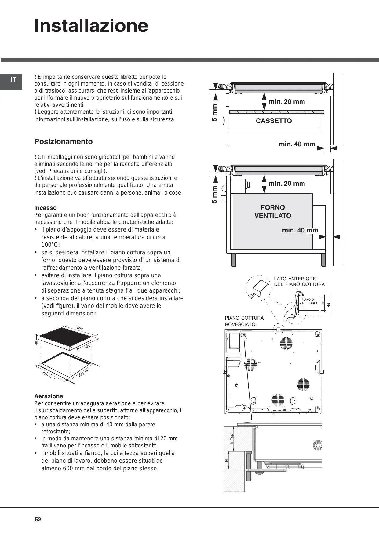 TIROIR • de manière à ce qu’il reste au moins 20 mm de distance entre la découpe d’encastrement et le meuble en dessous. • Les meubles jouxtant la table, dont la hauteur dépasse celle du plan de cuisson, doivent être placés à au moins 600 mm du bord du plan.