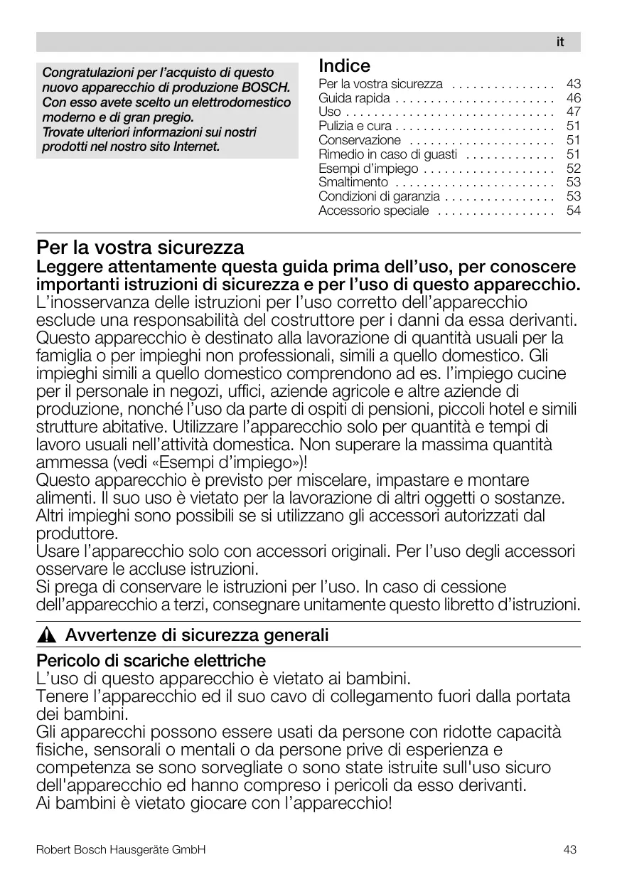 Scarica le istruzioni per il tuo Robot da cucina in formato PDF gratuitamente! Trova il tuo manuale MUM5 - BOSCH e riprendi in mano il tuo dispositivo elettronico. In questa pagina sono pubblicati tutti i documenti necessari per l'utilizzo del tuo dispositivo. MUM5 del marchio BOSCH.