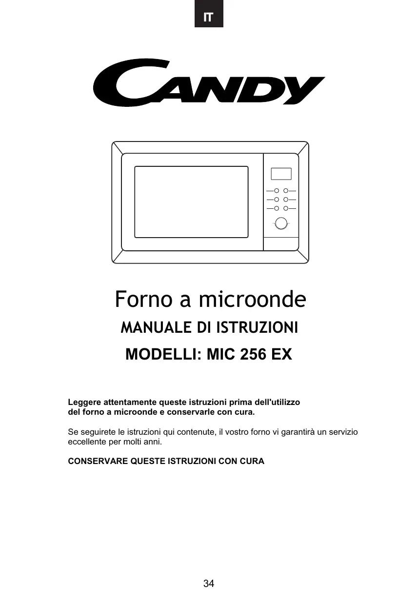 MIC256 EX - Microonde CANDY - Manuale utente e istruzioni gratuiti