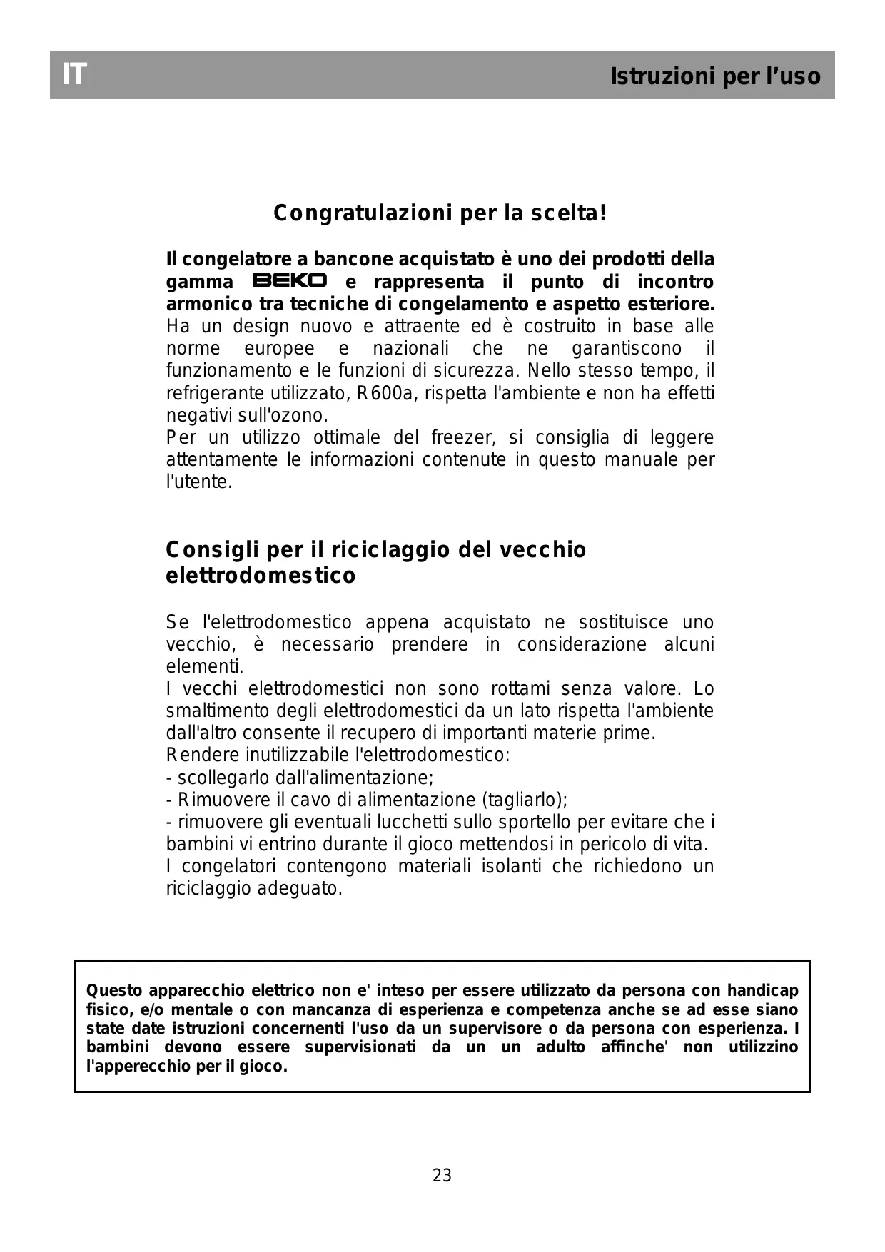 Scarica le istruzioni per il tuo Frigorifero congelatore in formato PDF gratuitamente! Trova il tuo manuale HSA32520 - BEKO e riprendi in mano il tuo dispositivo elettronico. In questa pagina sono pubblicati tutti i documenti necessari per l'utilizzo del tuo dispositivo. HSA32520 del marchio BEKO.