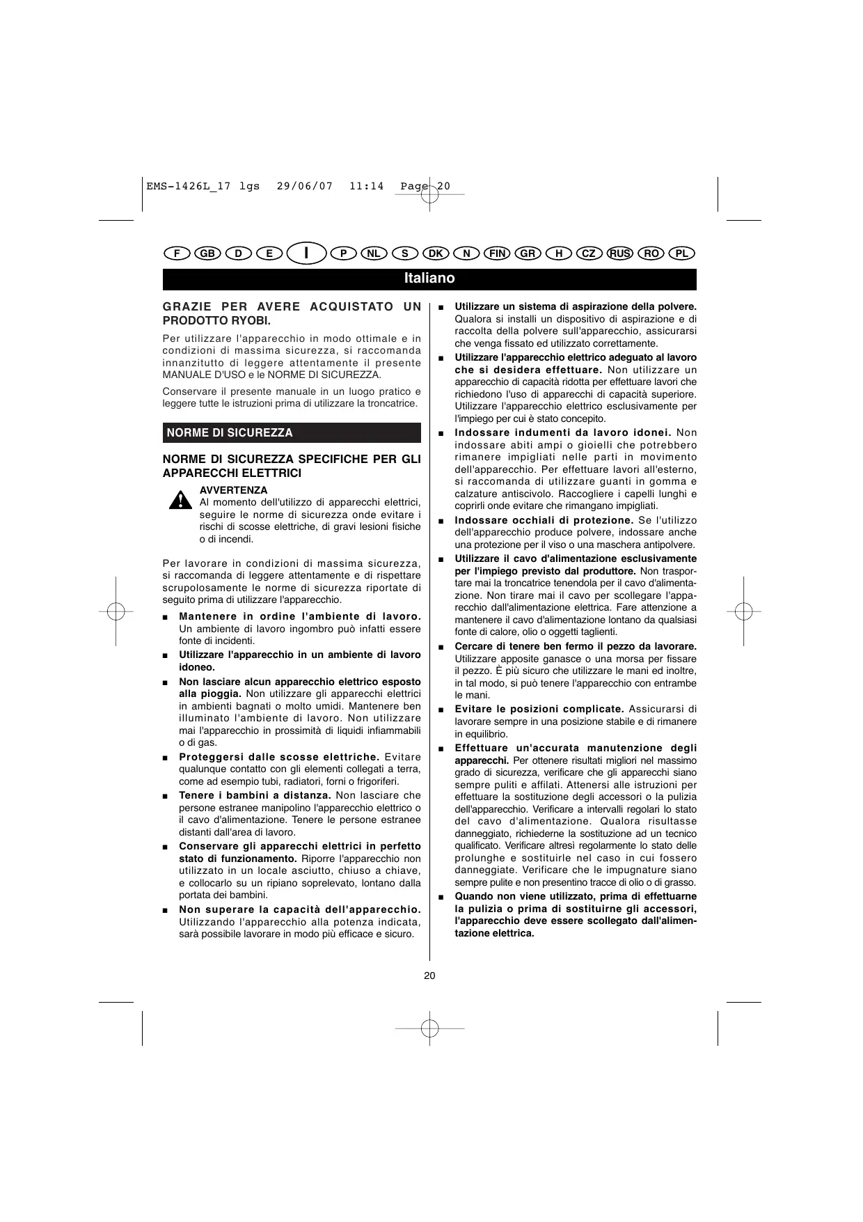 MANUALE UTENTE EMS-1426L RYOBI