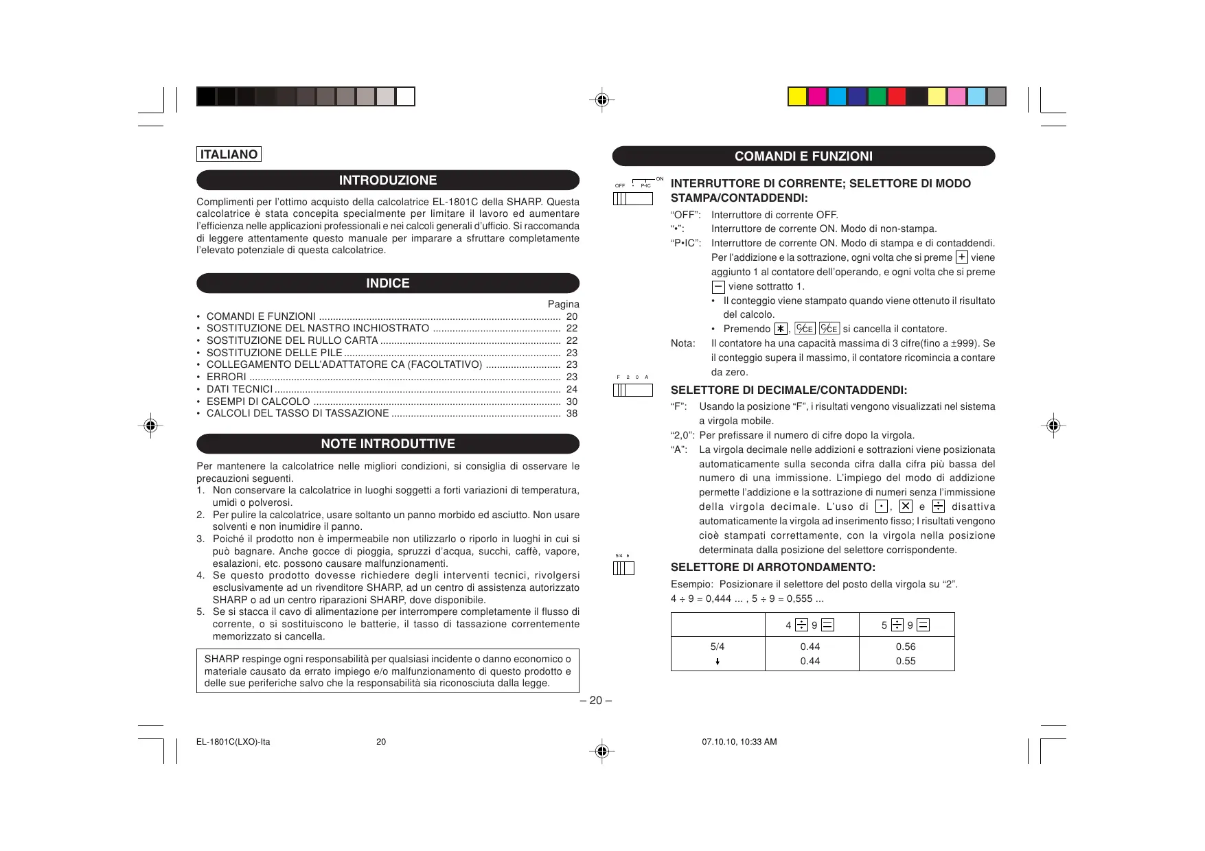 EL-1801C - Calcolatrice SHARP - Manuale utente e istruzioni gratuiti