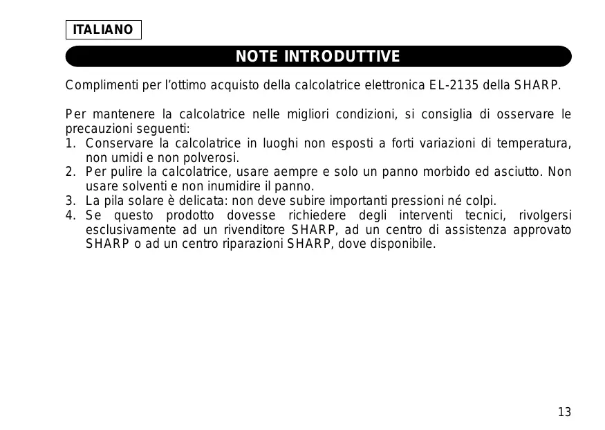 EL-2135 - Calcolatrice SHARP - Manuale utente e istruzioni gratuiti