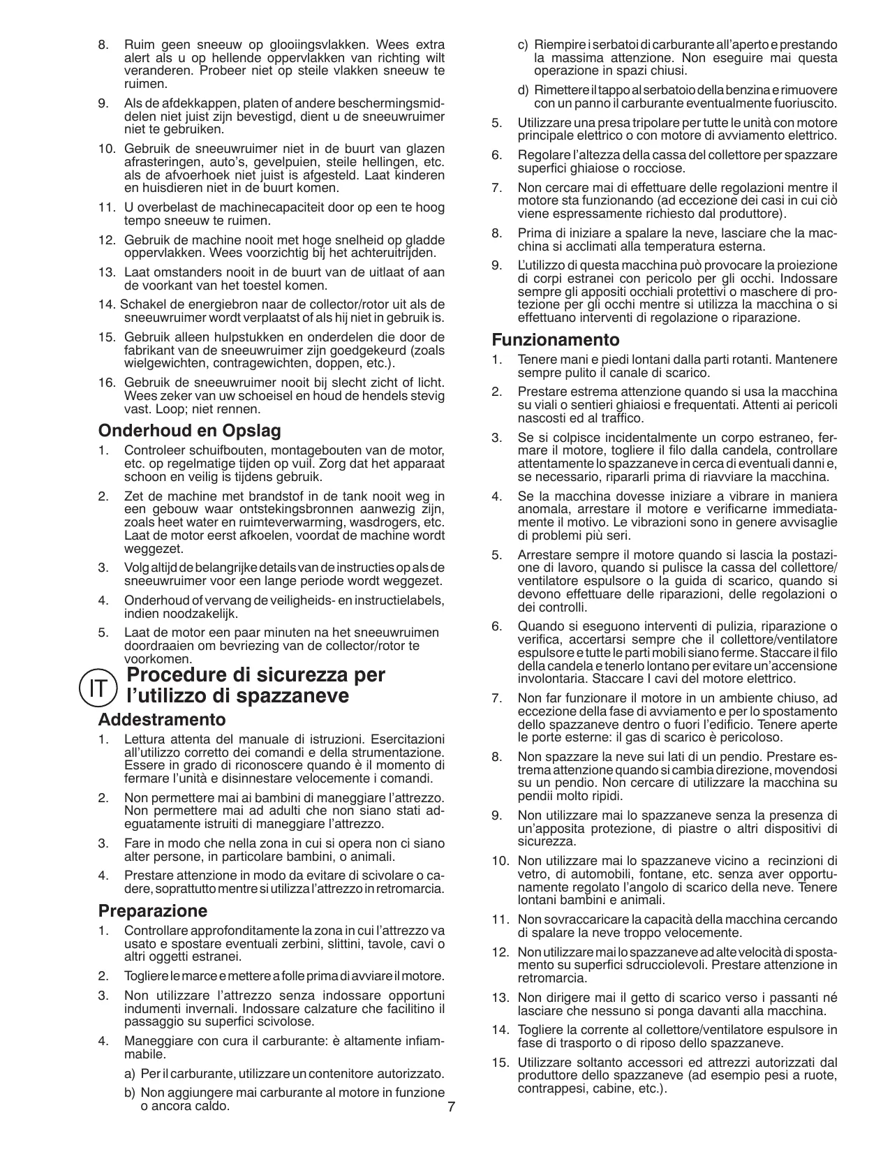Veiligheidsvoorschriften voor het gebruik van de sneeuwruimer