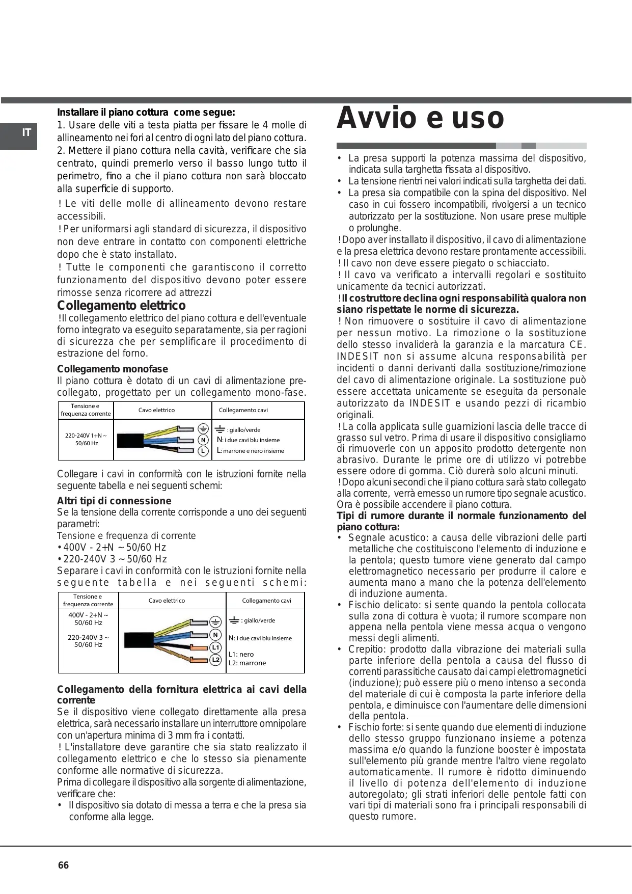 Il piano cottura è dotato di un cavi di alimentazione precollegato, progettato per un collegamento mono-fase.