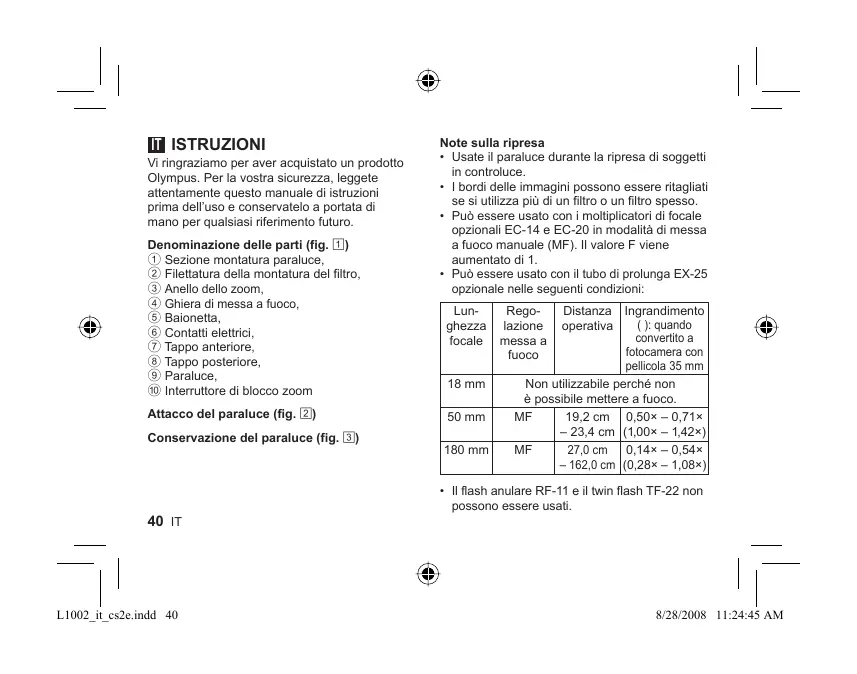 MANUALE UTENTE ZUIKO DIGITAL ED 18-180MM F3.5-6.3 OLYMPUS