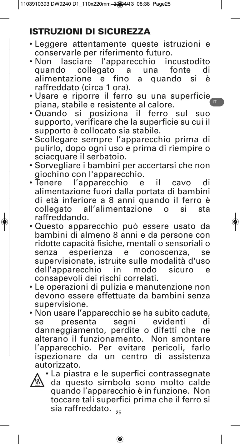 Scarica le istruzioni per il tuo Ferro da stiro a vapore in formato PDF gratuitamente! Trova il tuo manuale DW9240D1 STEAMFORCE, DW9240, DW9240D1 STEAM FORCE - ROWENTA e riprendi in mano il tuo dispositivo elettronico. In questa pagina sono pubblicati tutti i documenti necessari per l'utilizzo del tuo dispositivo. DW9240D1 STEAMFORCE, DW9240, DW9240D1 STEAM FORCE del marchio ROWENTA.