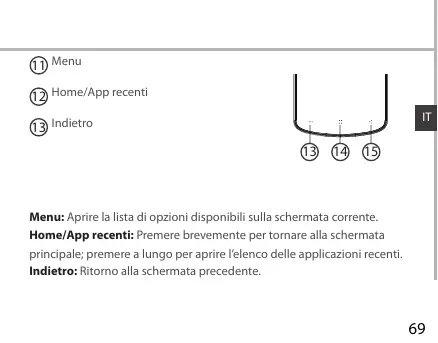 @eu @Home/ApP recent @ rise Menu: Aprire La lista di opzion disponibii sulla schermata corrente. Home/App recenti: Premere brevemente per tornare alla schermata principale: premere a lungo per aprire l'elenco delle applicazioni recenti Indietro: Ritoro alla schermata precedente.