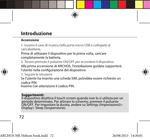 Pulsant ONOFF: quando à dico premere pertormre alla disposivo € spento,premere a schema precedente. go per accendeioQuando dispose À acces, pren appropriats sa & Fi ñ D Clare ep di ssh mneSD Aa sh . tar amie Le impostaziont G Home: premerebrevemente per rapide. roma alla schema nil premere a ange peraecederca © Iensore di ucc os Google Now séher que una matt 69 ARCHOS 50E Helium bookindd 69. 26/08/2015 14:30:00