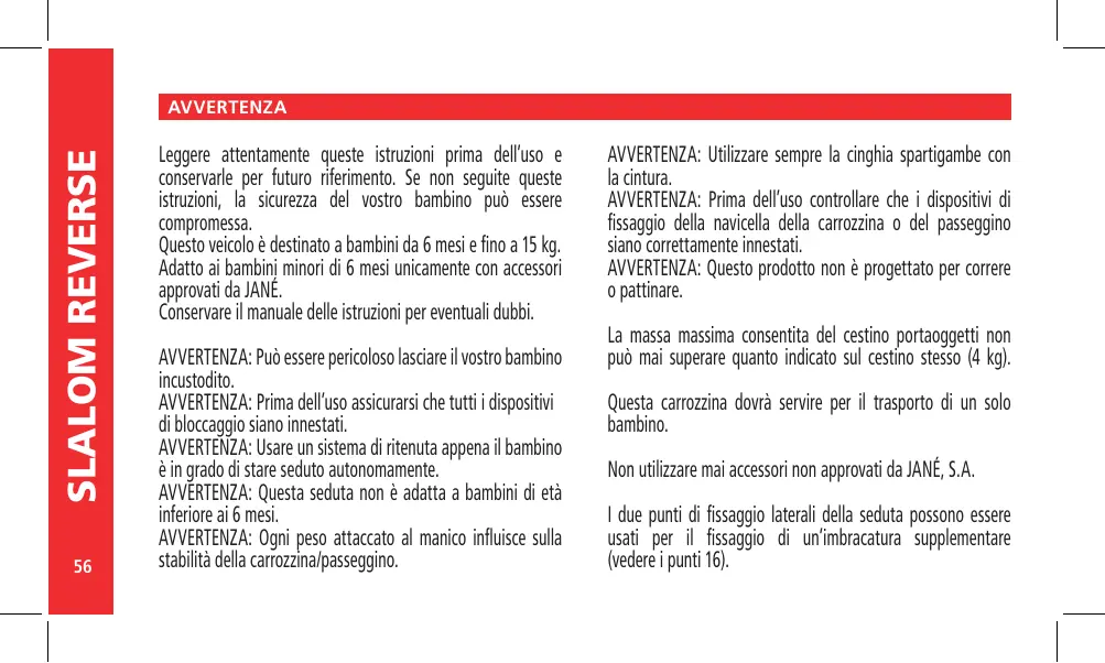 SLALOM REVERSE - Passeggino JANE - Manuale utente e istruzioni gratuiti