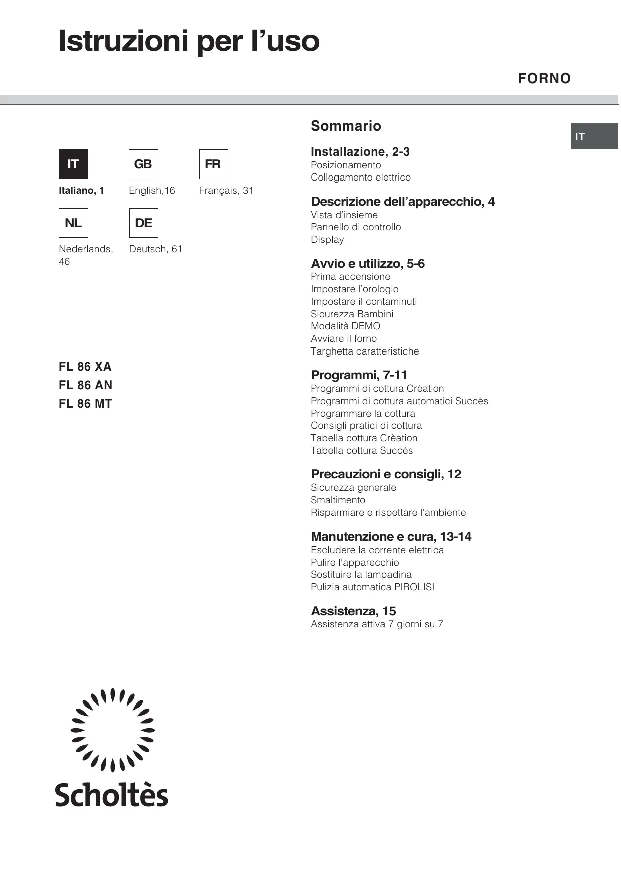 FL 86 XA - SCHOLTES - Manuale utente e istruzioni gratuiti