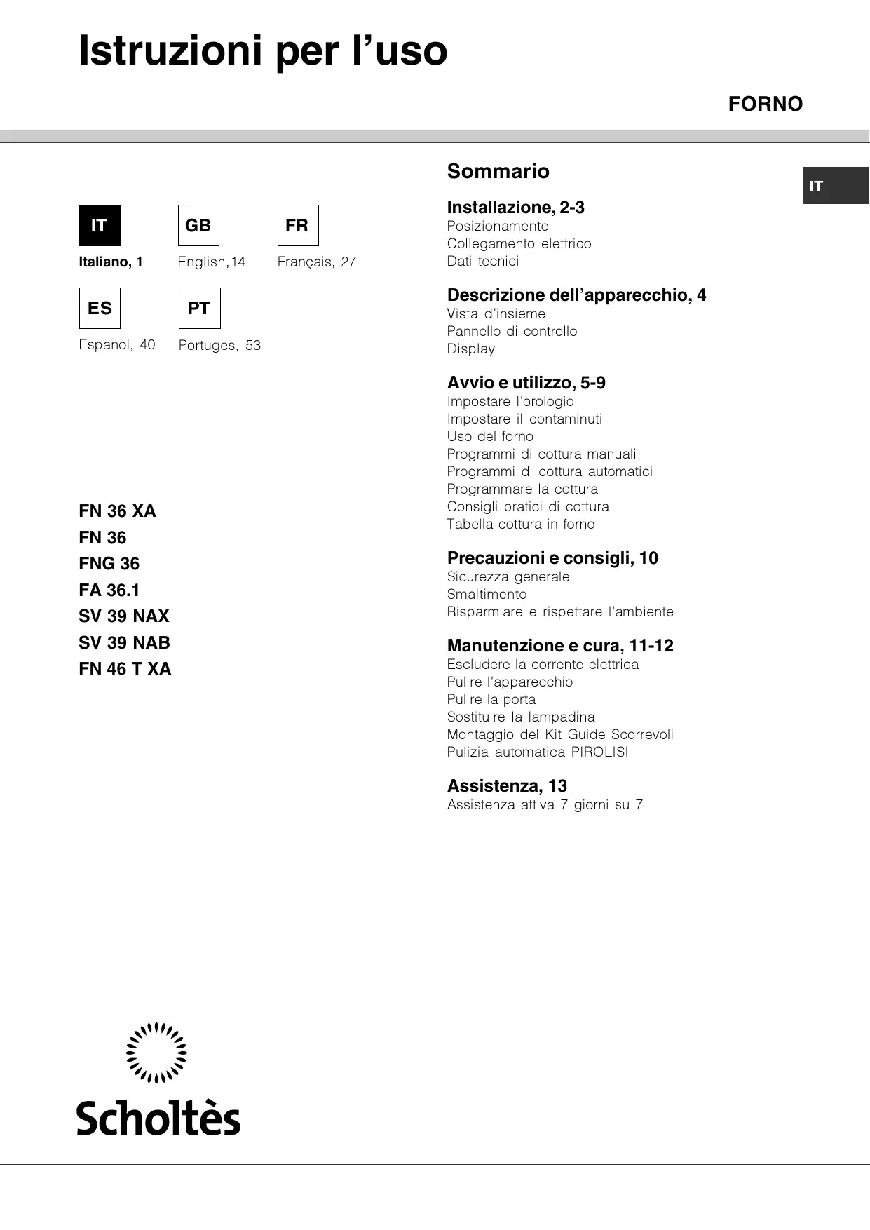 FNG 36 WH - Forno SCHOLTES - Manuale utente e istruzioni gratuiti