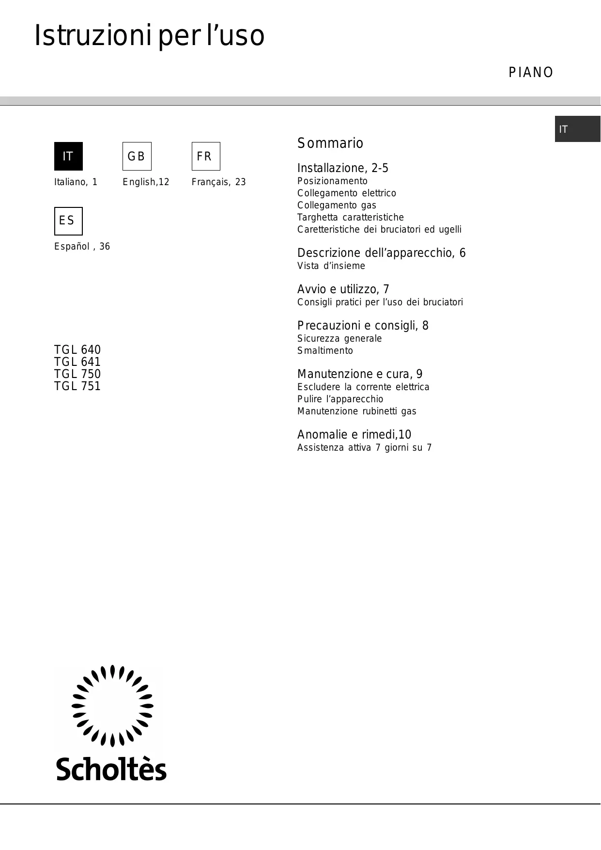 TGL 751 - Caldaia SCHOLTES - Manuale utente e istruzioni gratuiti