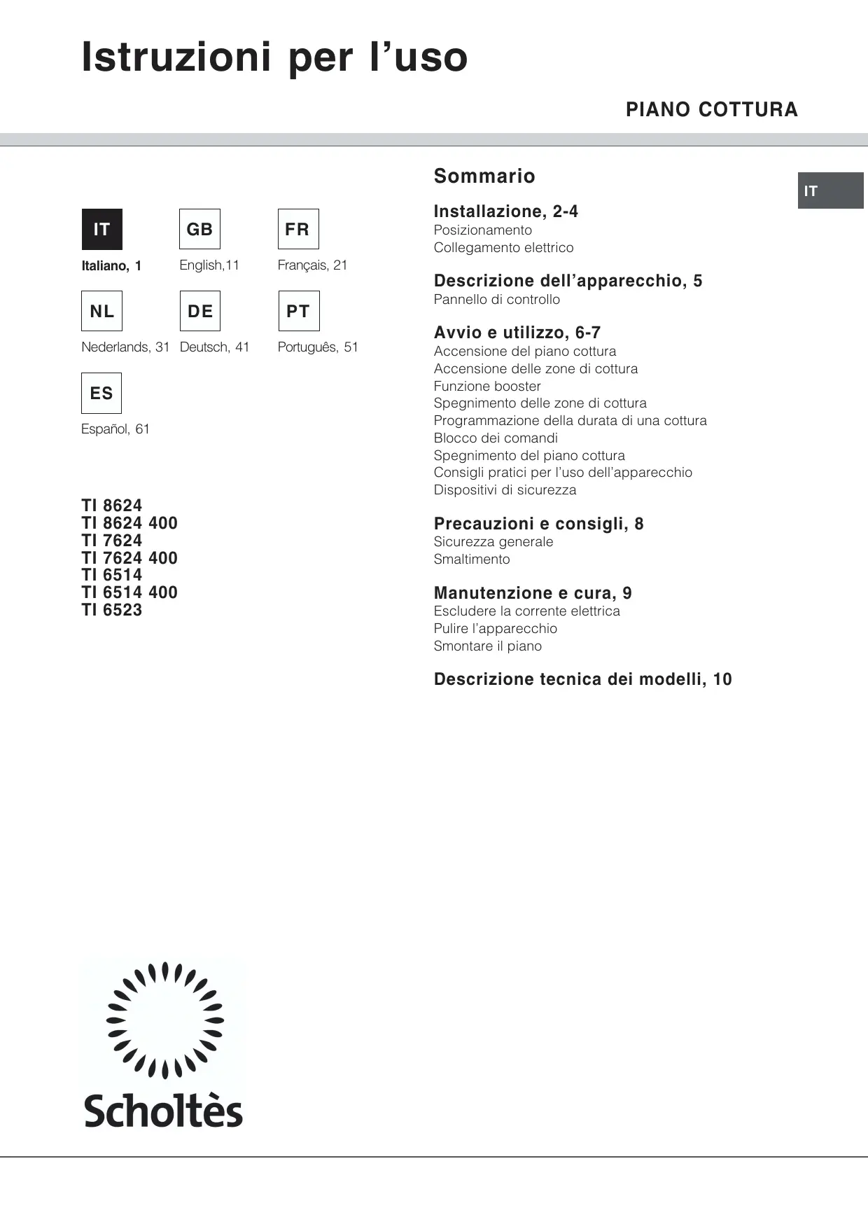TI 6514 - Piano cottura SCHOLTES - Manuale utente e istruzioni gratuiti