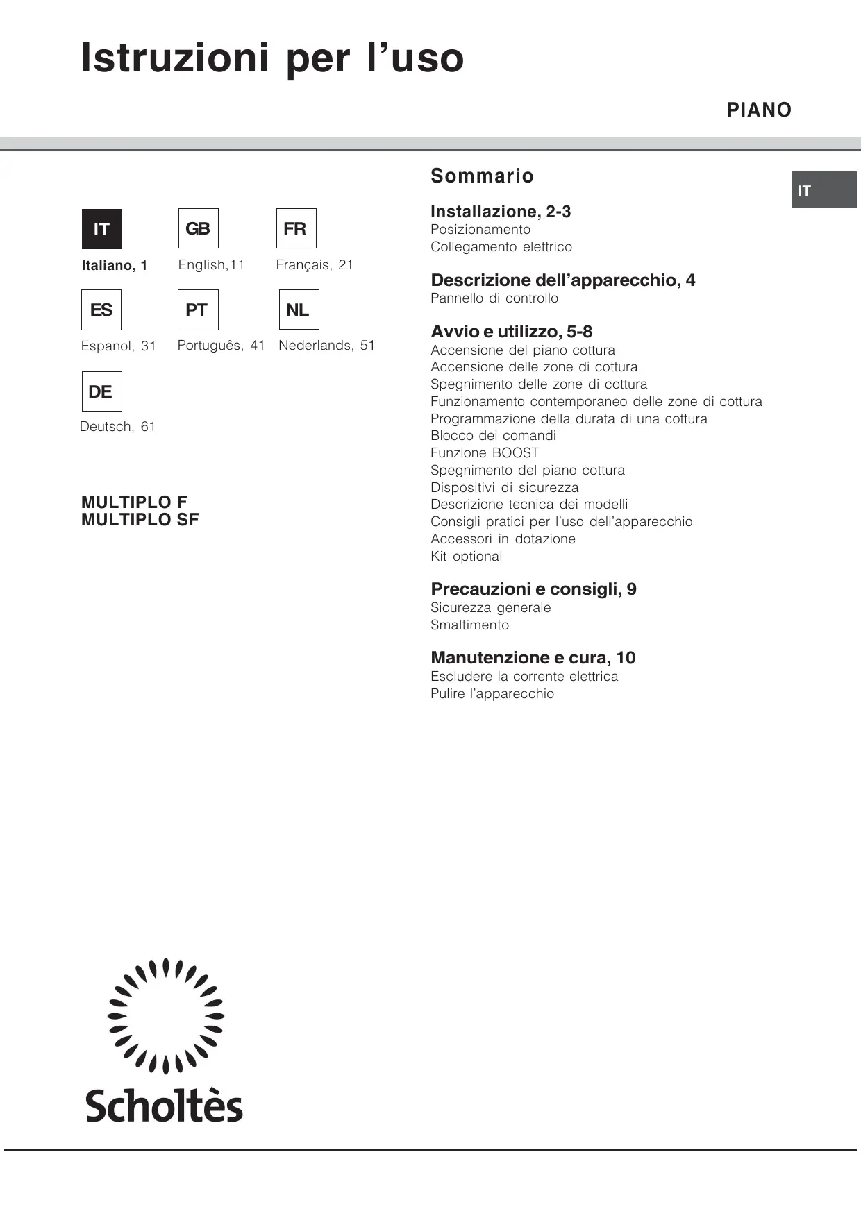 MULTIPLO F - Piano cottura SCHOLTES - Manuale utente e istruzioni gratuiti