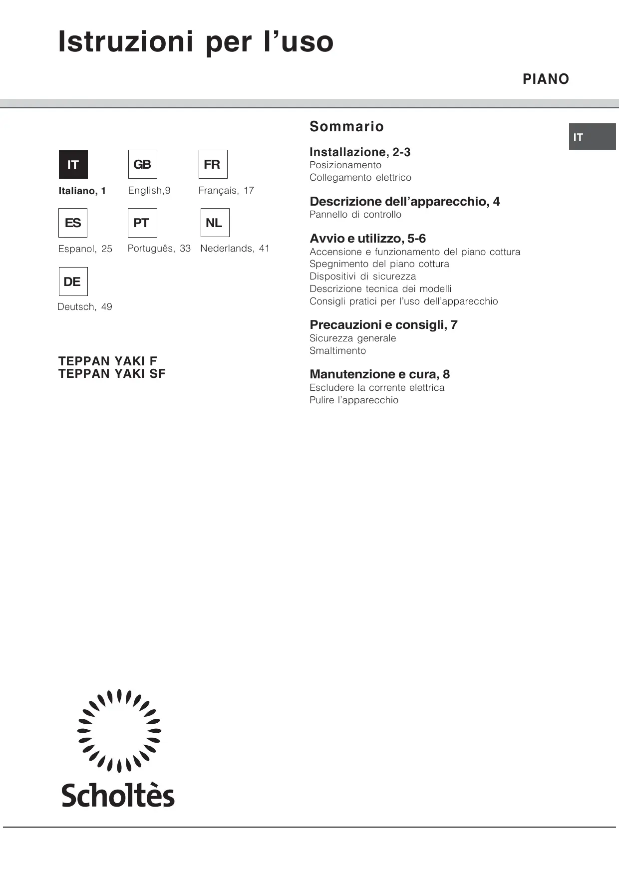 TEPPAN YAKI SF - Piano cottura SCHOLTES - Manuale utente e istruzioni gratuiti