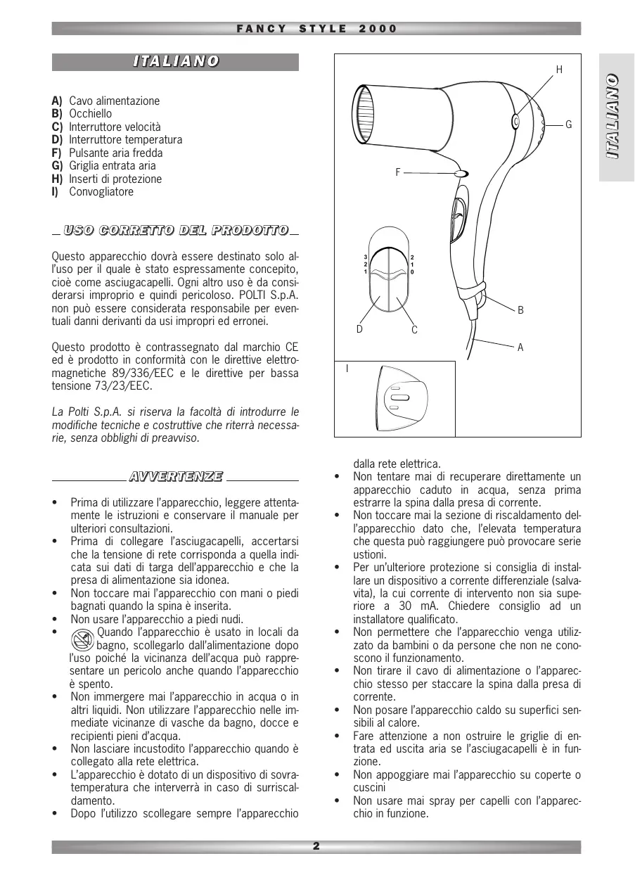 FANCY STYLE 2000 - Asciugacapelli POLTI - Manuale utente e istruzioni gratuiti