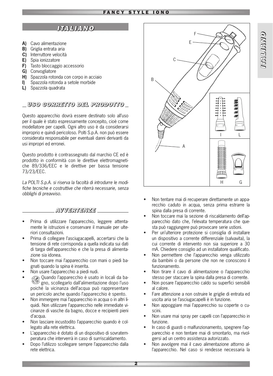 MANUALE UTENTE FANCY STYLE IONO POLTI