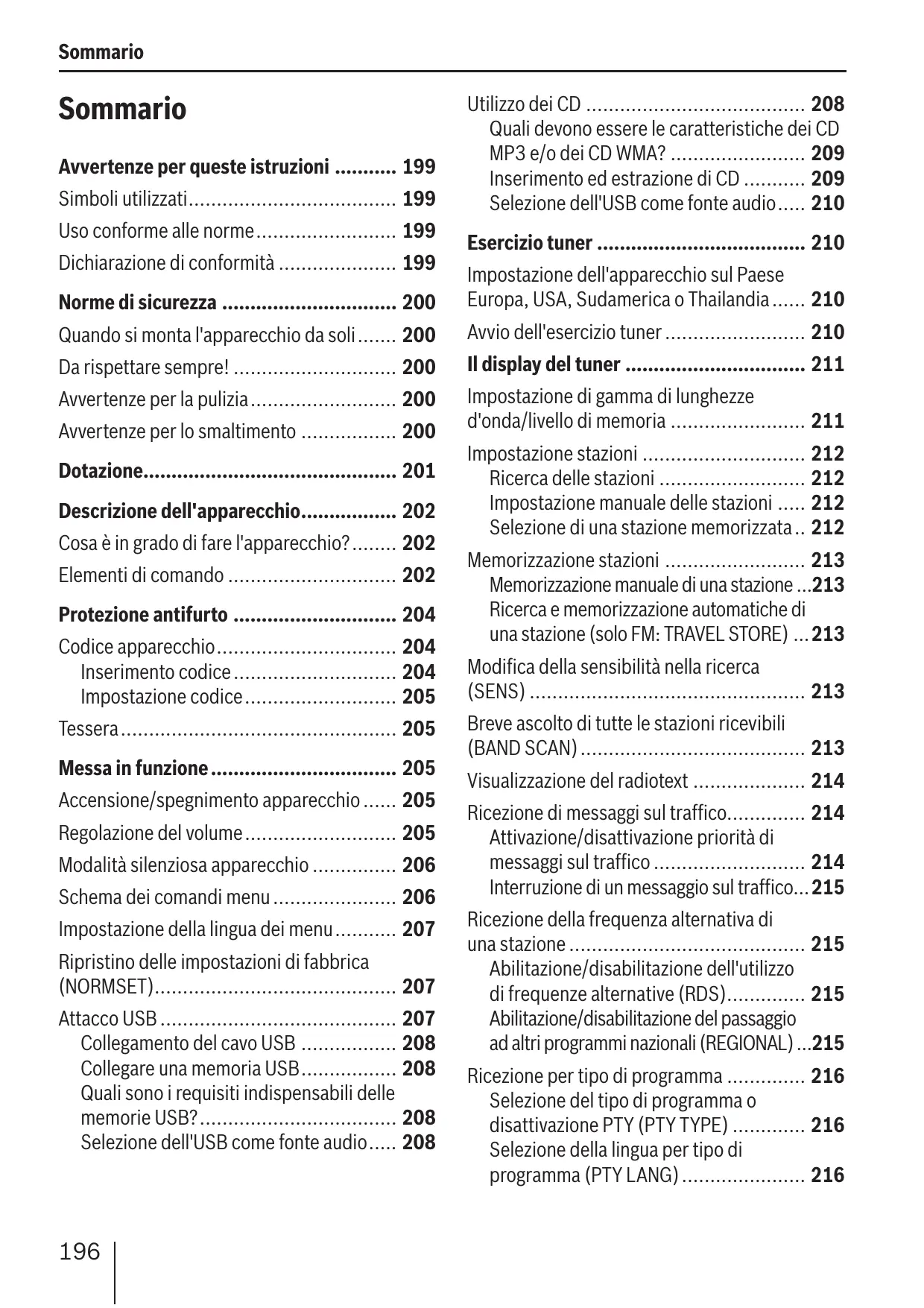 - Sommario Sommario Avvertenze per queste istruzioni p. 199
