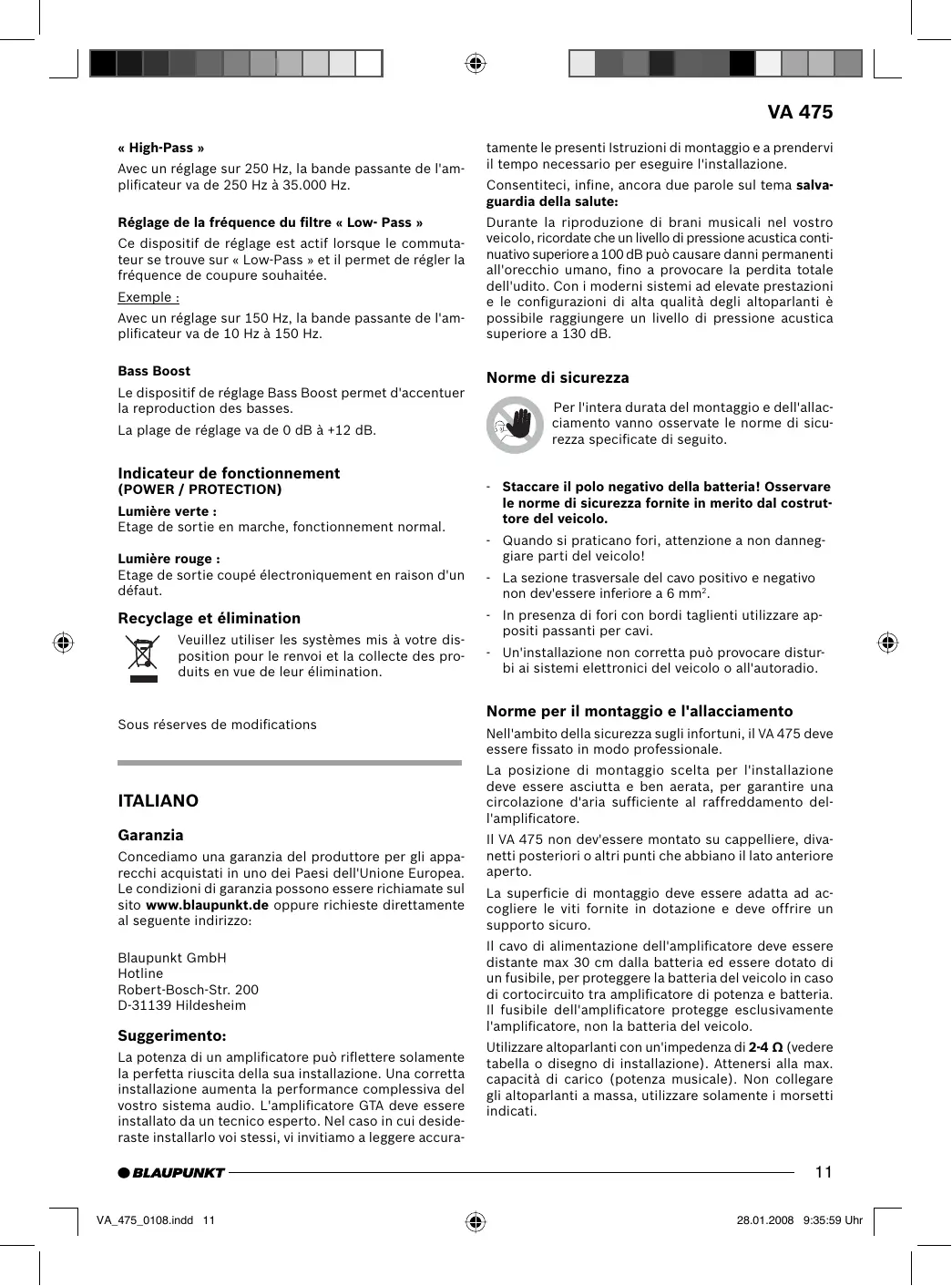 VELOCITY VA 475 - BLAUPUNKT - Manuale utente e istruzioni gratuiti