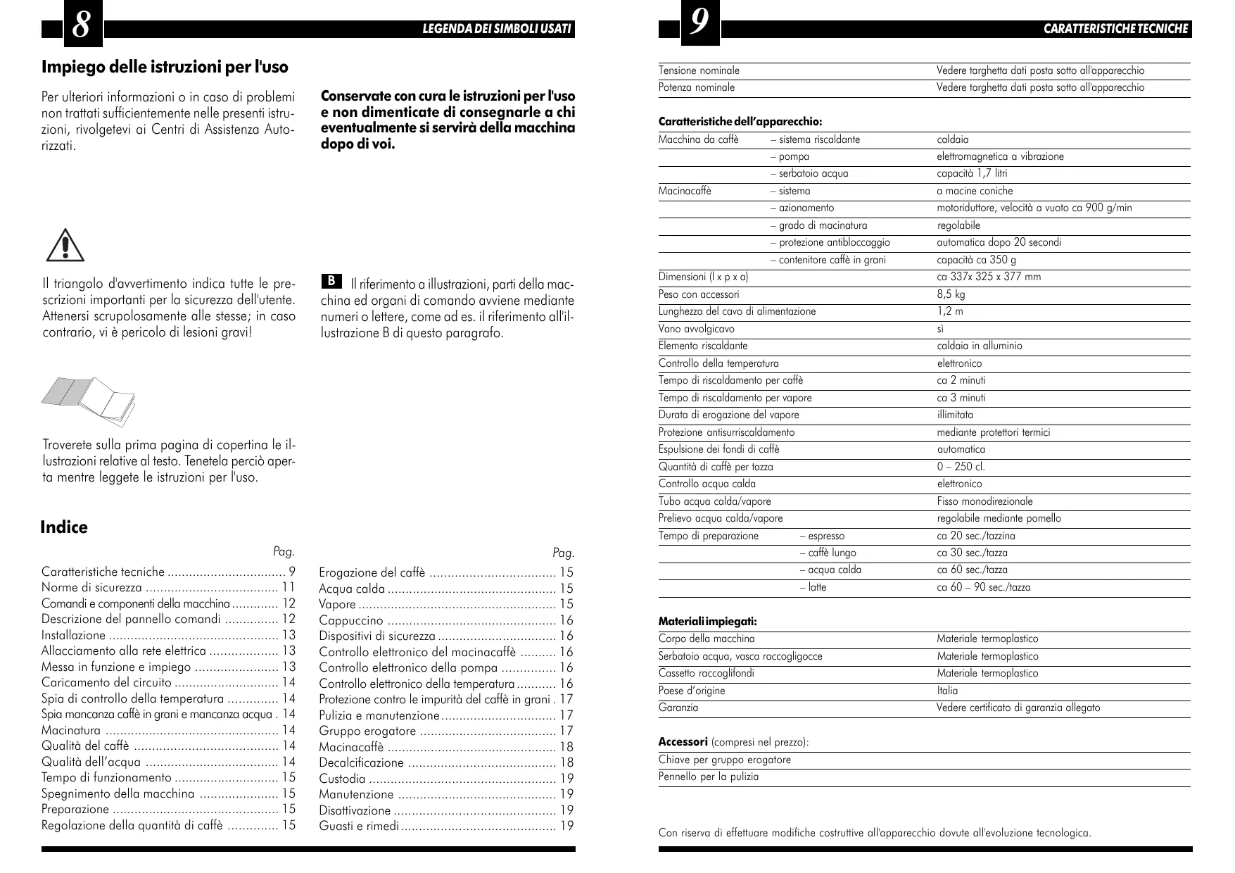 Scarica le istruzioni per il tuo Macchina da caffè in formato PDF gratuitamente! Trova il tuo manuale VIENNA - SAECO e riprendi in mano il tuo dispositivo elettronico. In questa pagina sono pubblicati tutti i documenti necessari per l'utilizzo del tuo dispositivo. VIENNA del marchio SAECO.