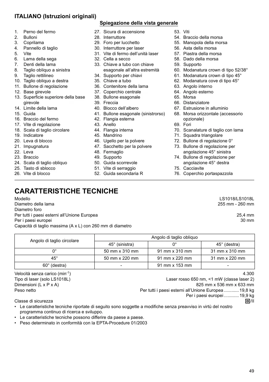 ITALIANO Sommario CARATTERISTICHE TECNICHE.… REGOLE DI SICUREZZA AGGIUNTIVE PER L'UTENSILE . INSTALLAZIONE DESCRIZIONE FUNZIONALE MONTAGGIO USO MANUTENZIONE .. ACCESSORI.