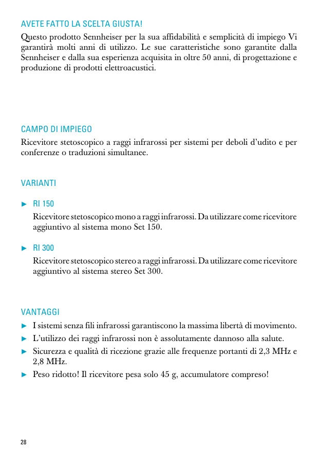 RI 300 - Cuffie SENNHEISER - Manuale utente e istruzioni gratuiti