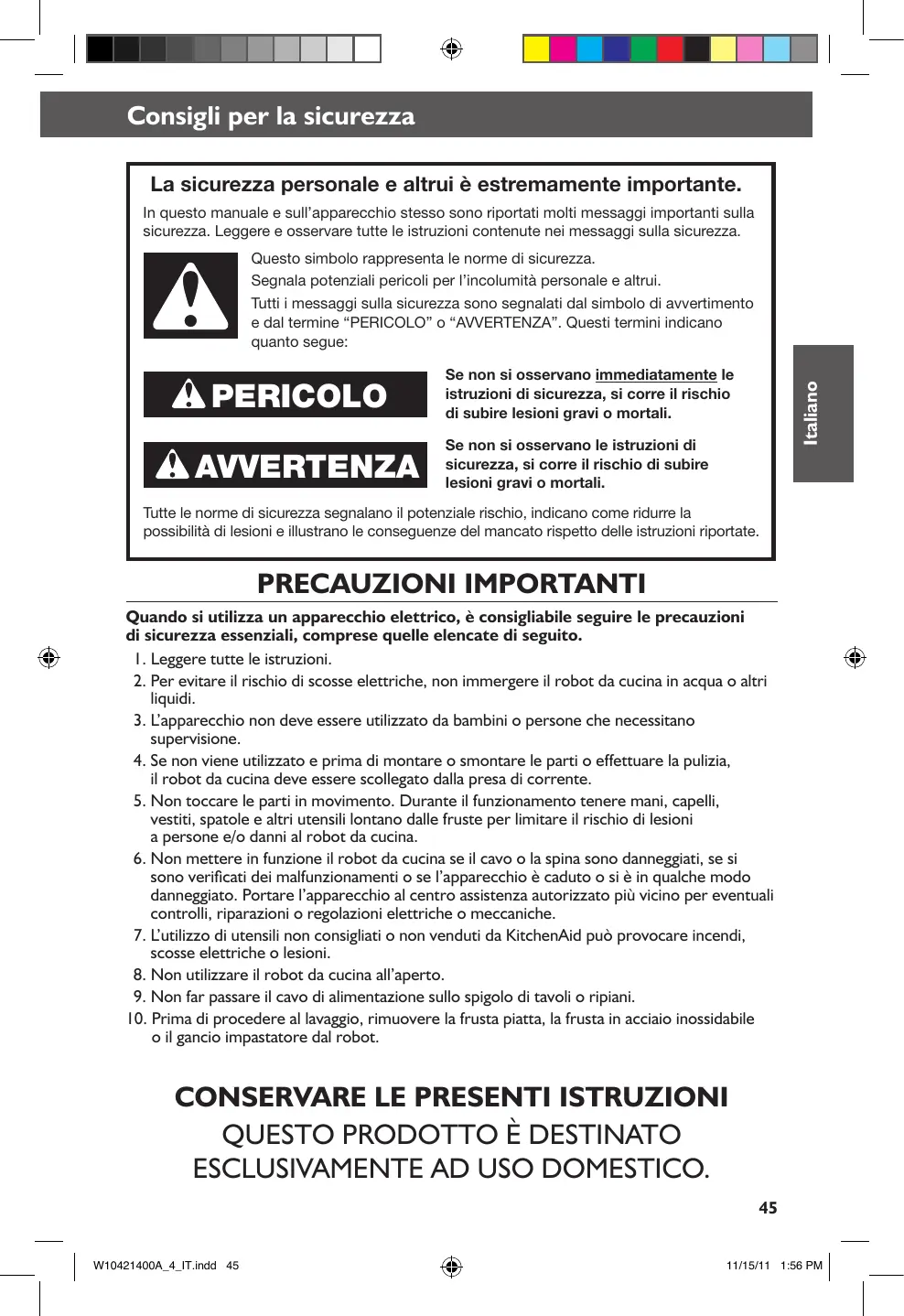 MANUALE UTENTE 5KSM7580XECA, 5KSM7580XECA ARTISAN, 5KSM7580XEMS ARTISAN, 5KSM7580XEER KITCHENAID