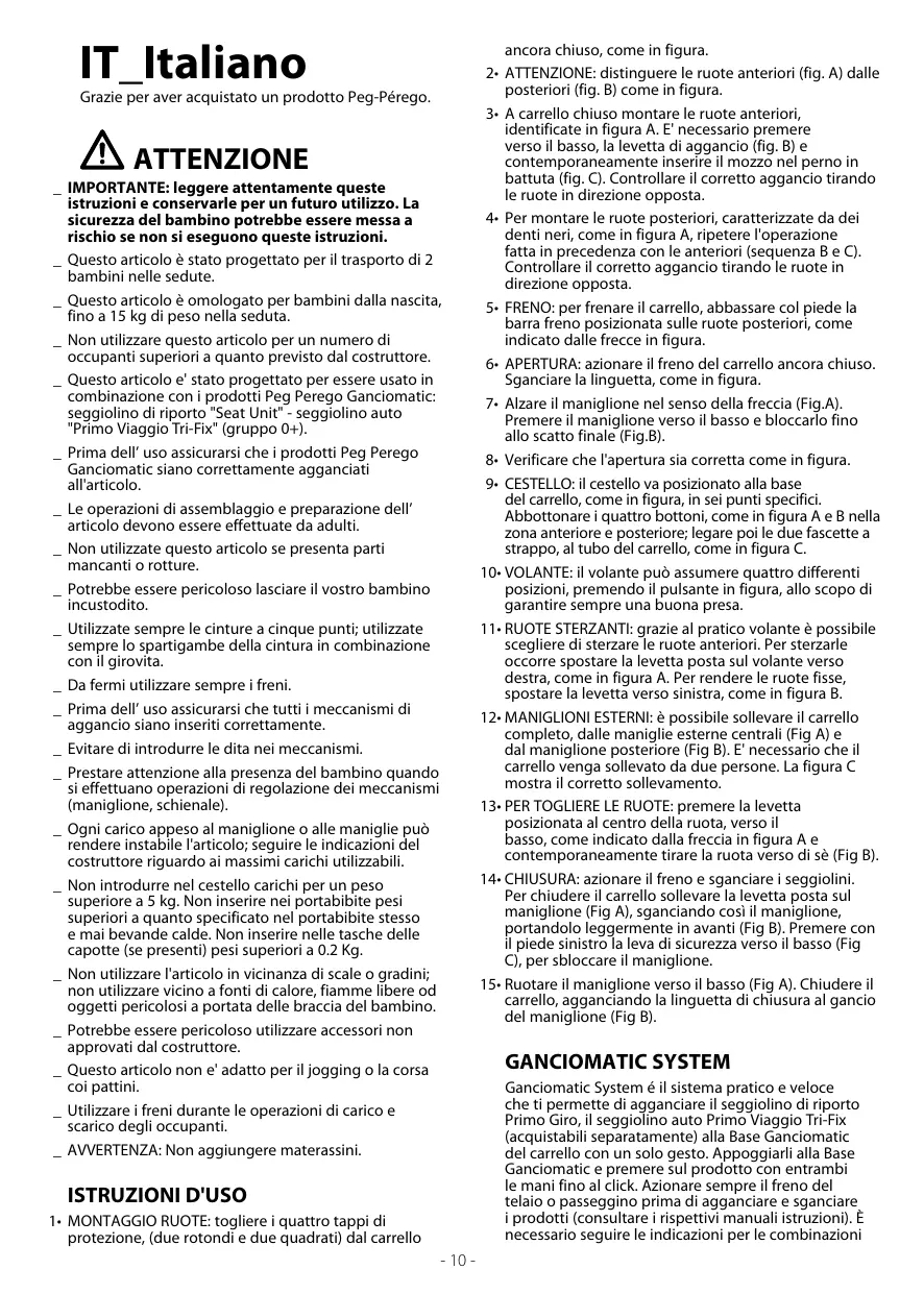 Scarica le istruzioni per il tuo Passeggino in formato PDF gratuitamente! Trova il tuo manuale DUETTE SW - PEG PEREGO e riprendi in mano il tuo dispositivo elettronico. In questa pagina sono pubblicati tutti i documenti necessari per l'utilizzo del tuo dispositivo. DUETTE SW del marchio PEG PEREGO.