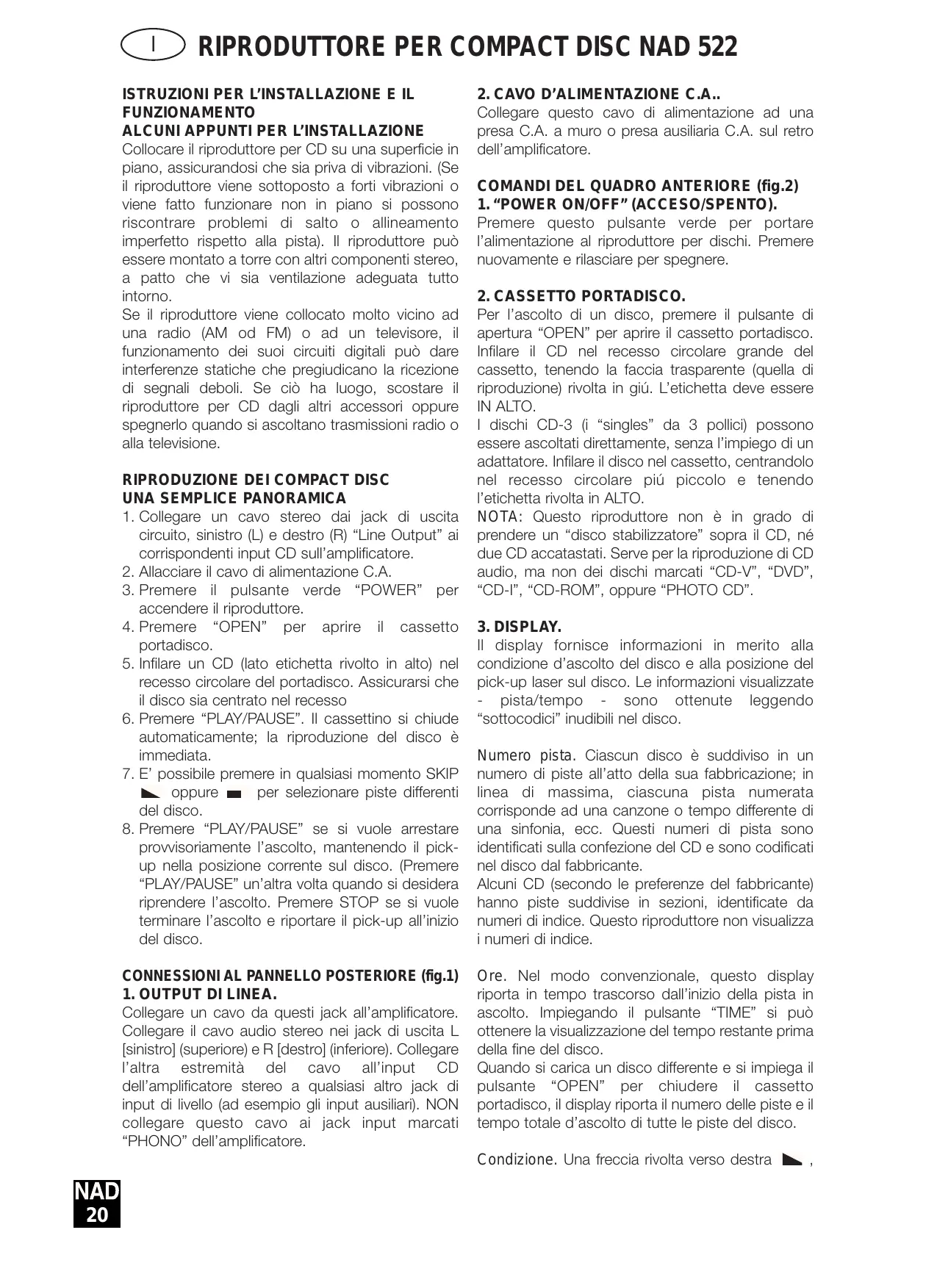 Scarica le istruzioni per il tuo Lettore audio in formato PDF gratuitamente! Trova il tuo manuale 522 - NAD e riprendi in mano il tuo dispositivo elettronico. In questa pagina sono pubblicati tutti i documenti necessari per l'utilizzo del tuo dispositivo. 522 del marchio NAD.