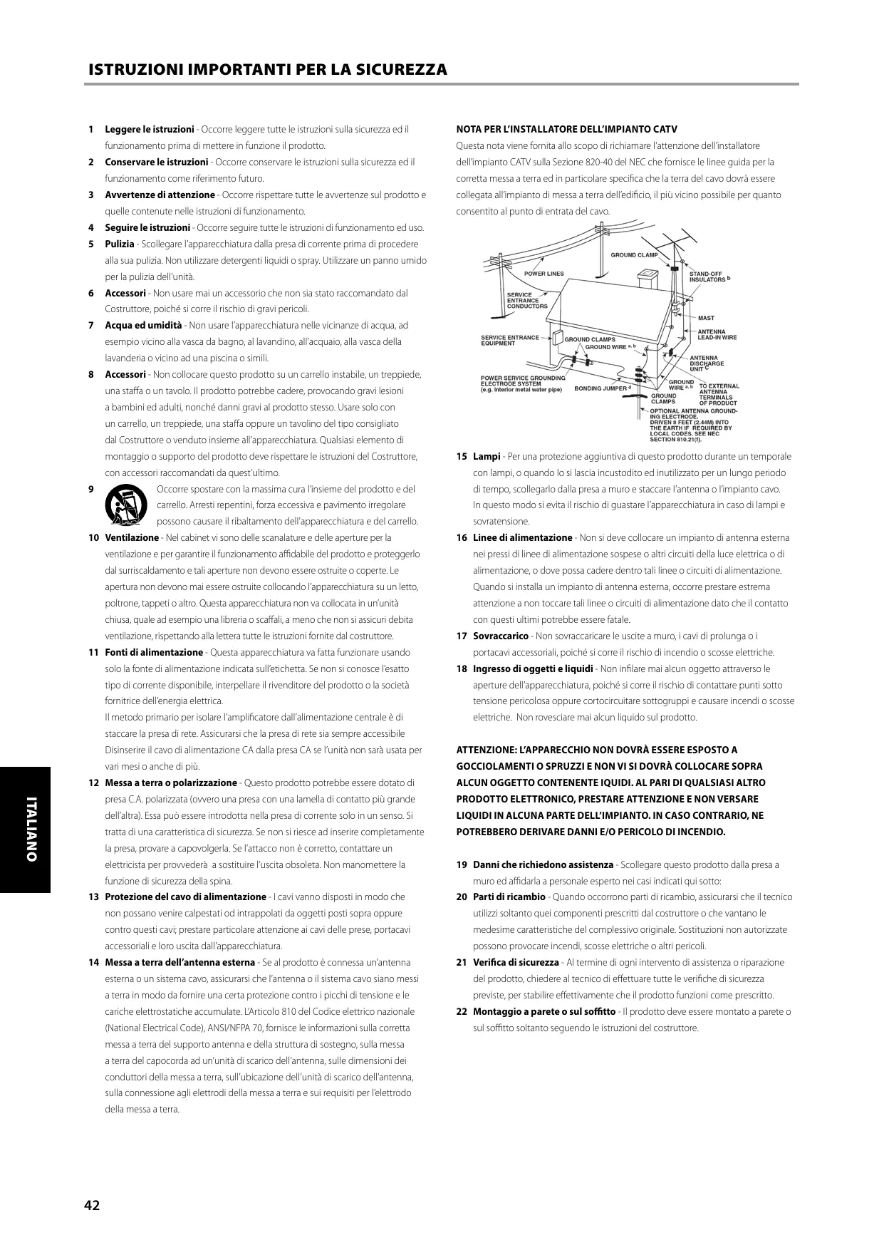 14 Mise à la terre d’une Antenne Extérieure - Si l’appareil est relié à une antenne