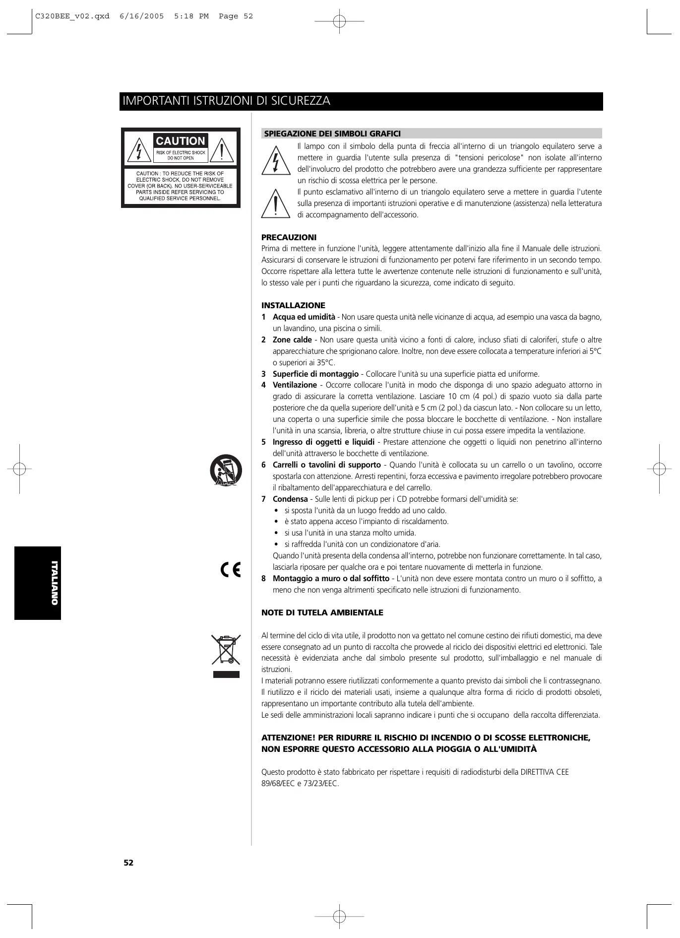 ATTENTION DANGER. POUR ÉVITER TOUT RISQUE D'INCENDIE OU DE CHOC ÉLECTRIQUE, N'EXPOSEZ JAMAIS CET APPAREIL A LA PLUIE OU A L'HUMIDITÉ. Ce produit a été fabriqué de manière à être conforme aux exigences concernant les interférence radio des DIRECTIVES CEE 89/68/EEC et 73/23/EEC.