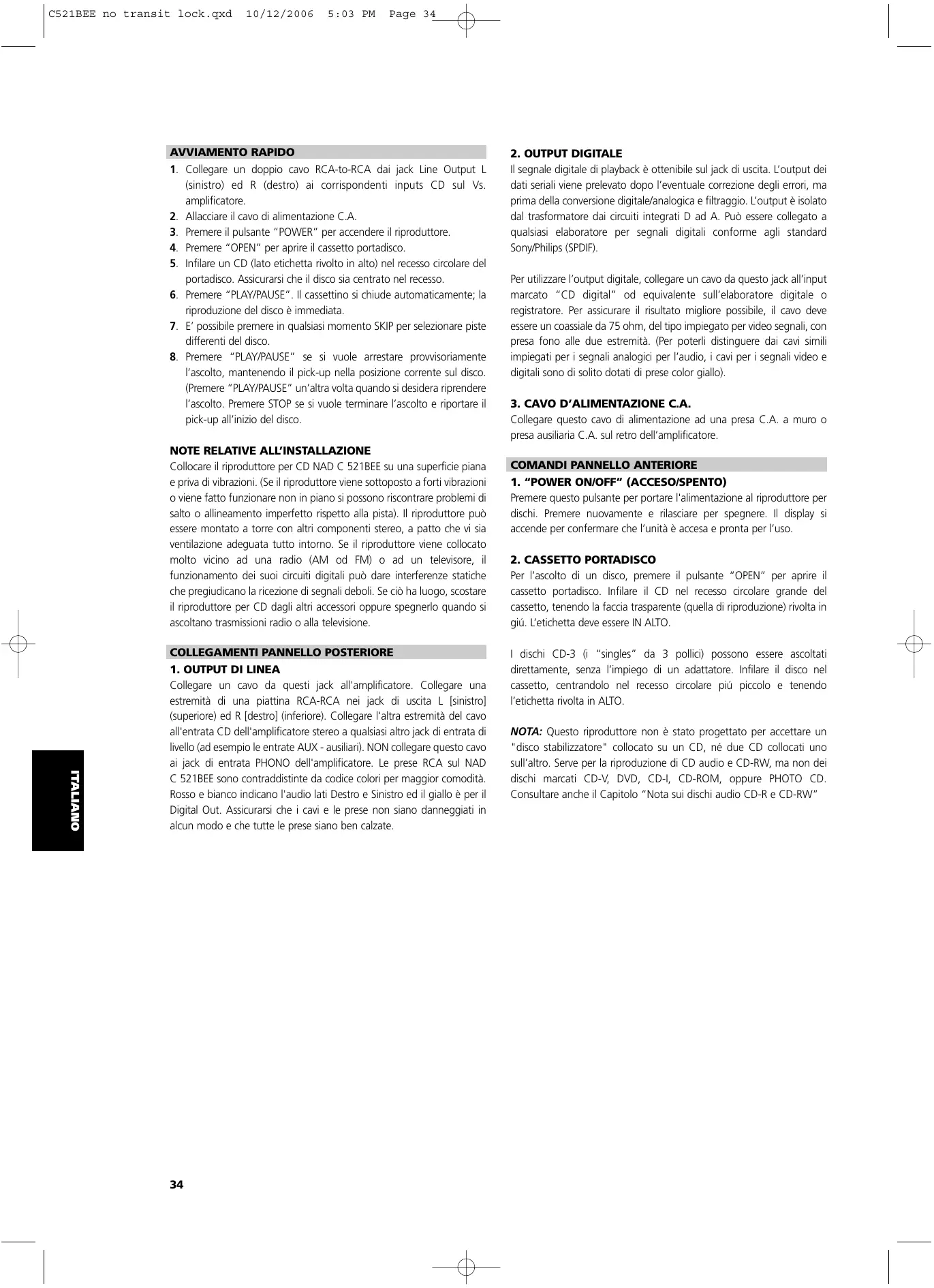 Scarica le istruzioni per il tuo Lettore CD in formato PDF gratuitamente! Trova il tuo manuale C521BEE - NAD e riprendi in mano il tuo dispositivo elettronico. In questa pagina sono pubblicati tutti i documenti necessari per l'utilizzo del tuo dispositivo. C521BEE del marchio NAD.