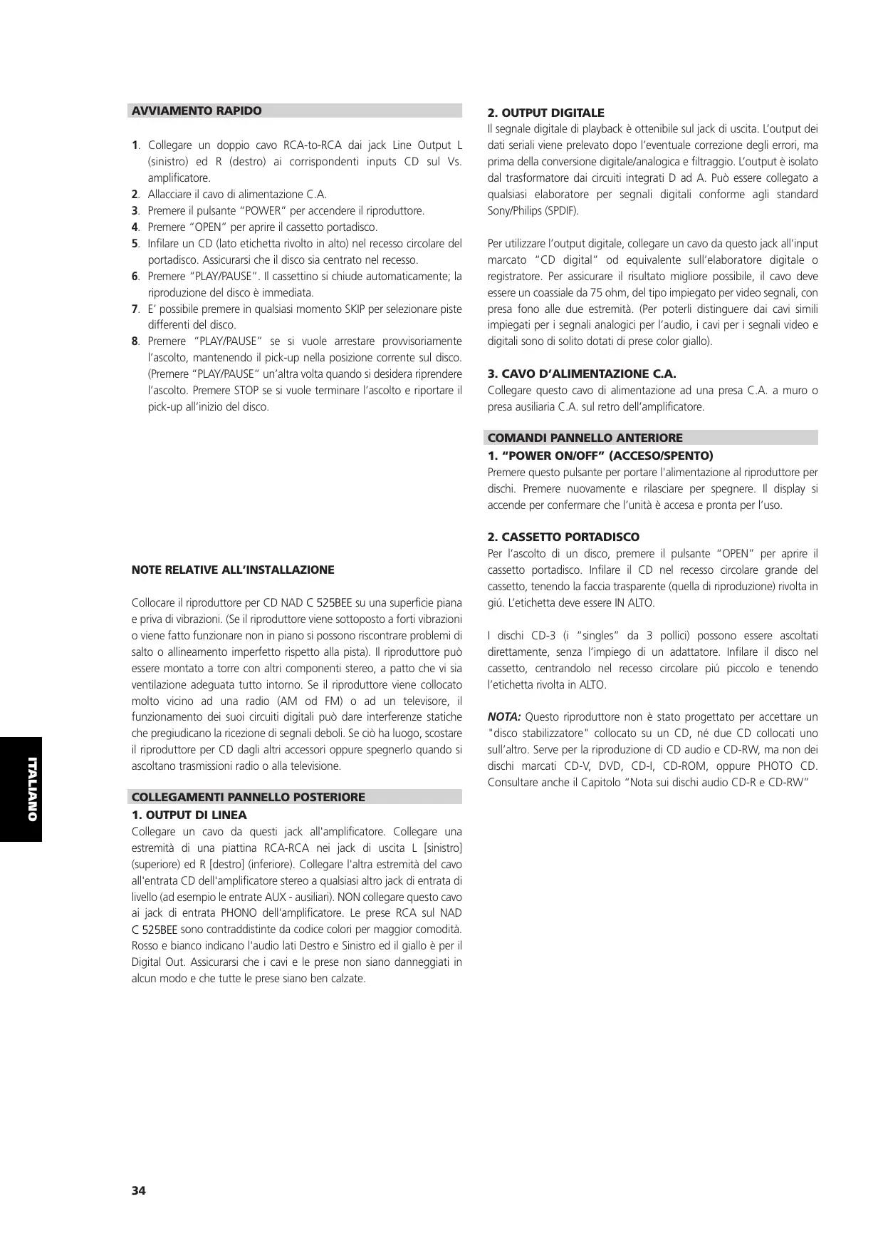 Scarica le istruzioni per il tuo Lettore CD in formato PDF gratuitamente! Trova il tuo manuale C525BEE - NAD e riprendi in mano il tuo dispositivo elettronico. In questa pagina sono pubblicati tutti i documenti necessari per l'utilizzo del tuo dispositivo. C525BEE del marchio NAD.