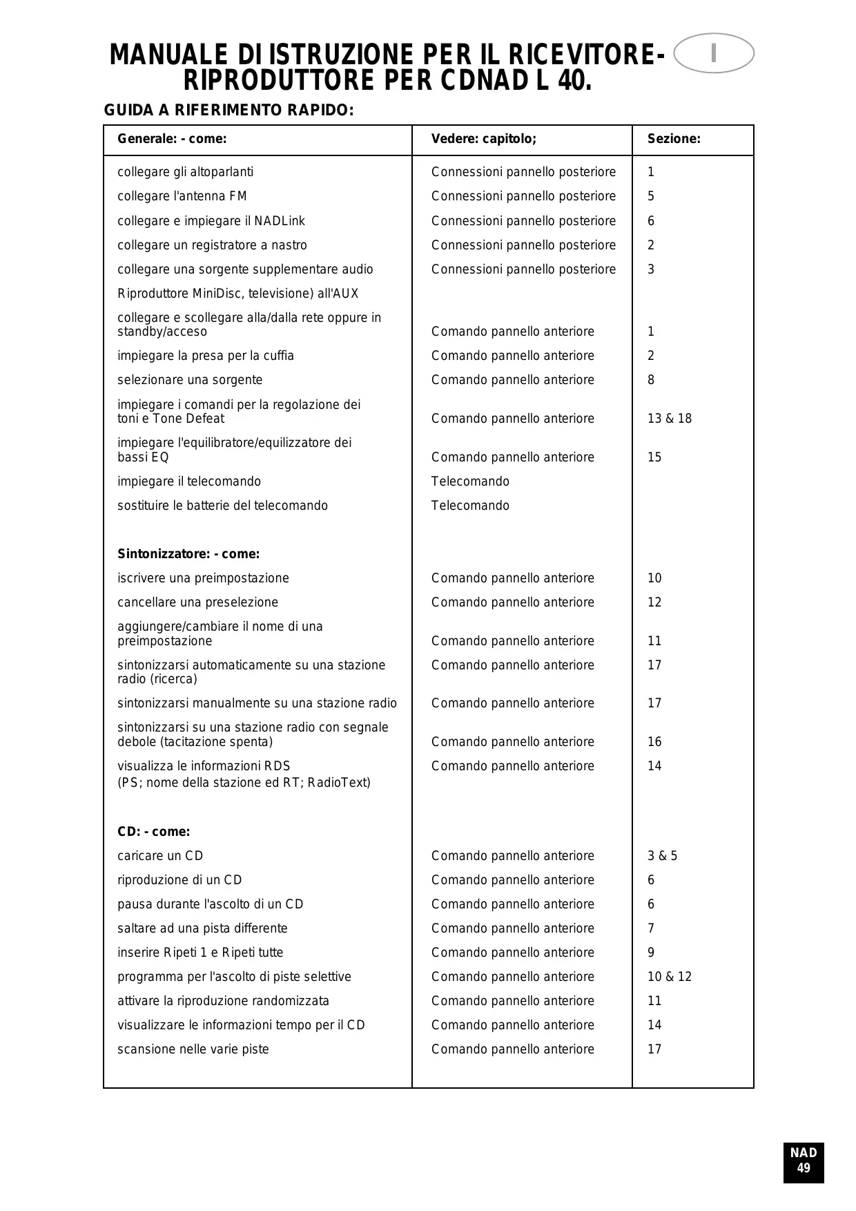 L40 - NAD - Manuale utente e istruzioni gratuiti