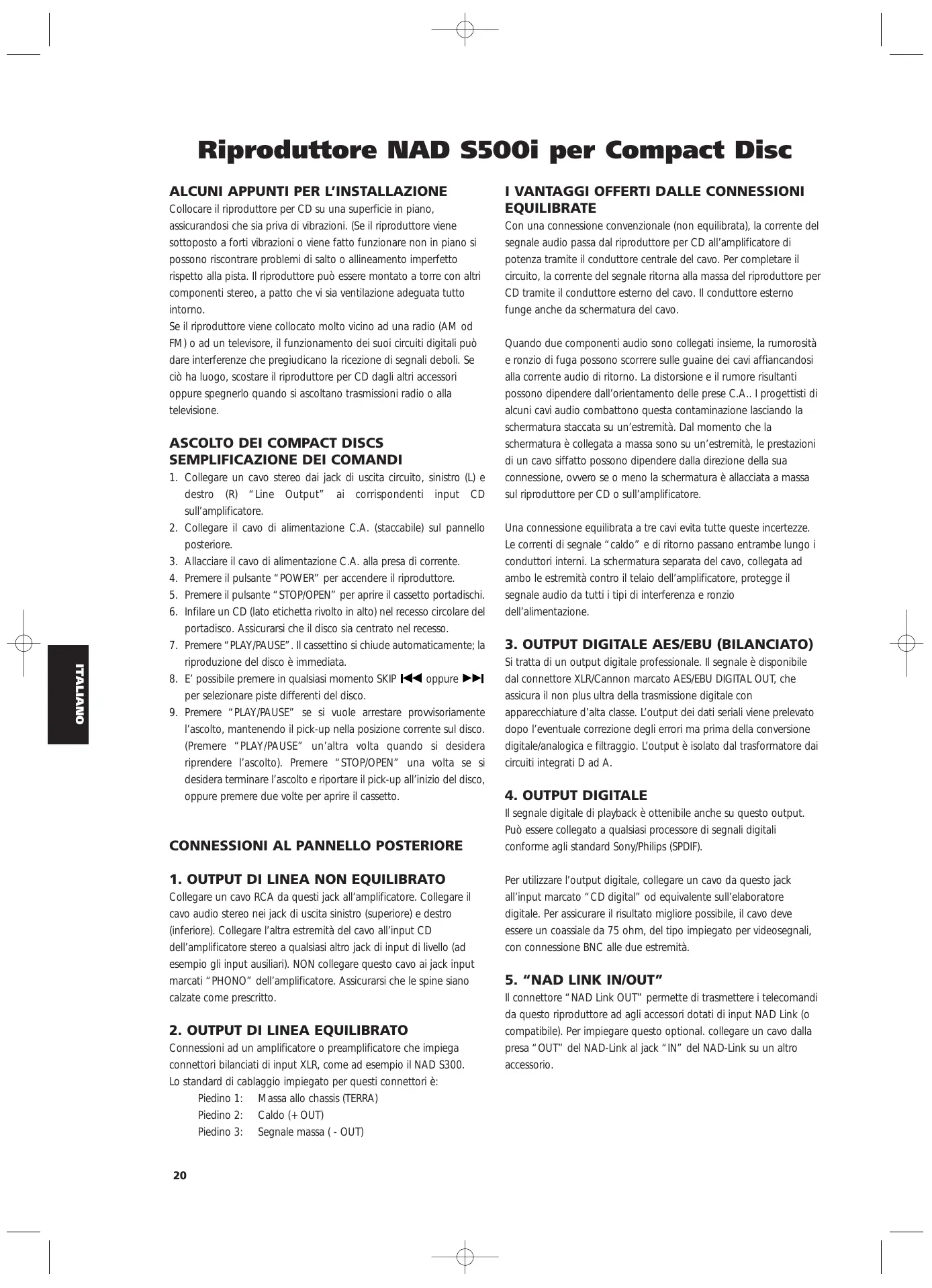 Trova gratuitamente il manuale del dispositivo S500I NAD in formato PDF.