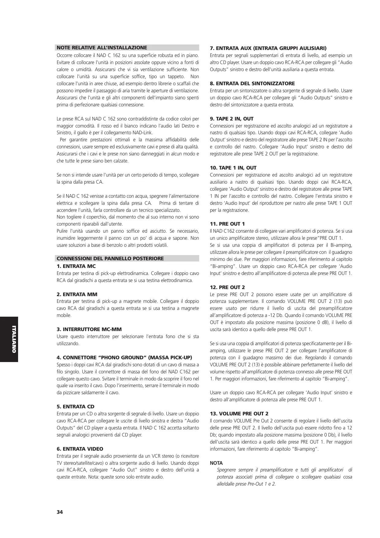 C162 - Preamplificatore audio NAD - Manuale utente e istruzioni gratuiti