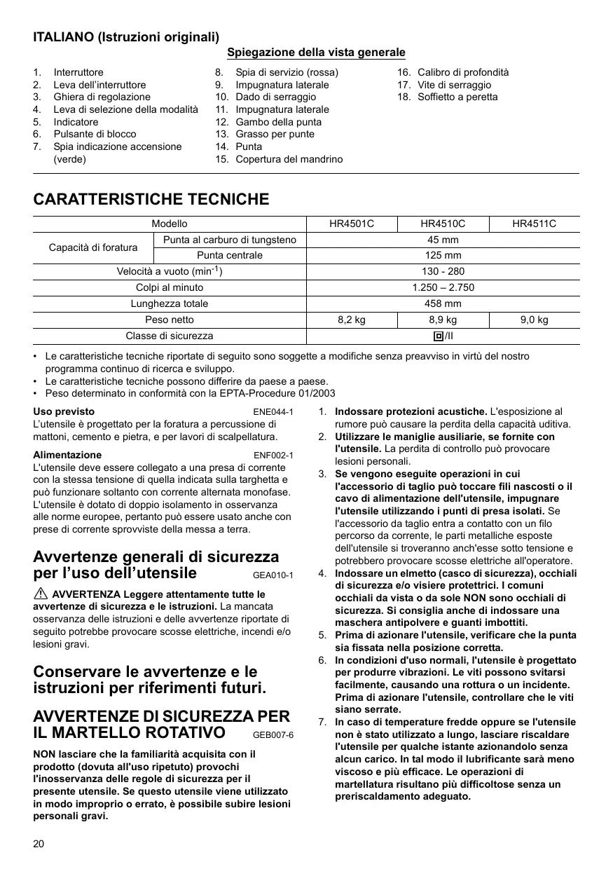 AVVERTENZE DI SICUREZZA PER IL MARTELLO ROTATIVO GEB007-6