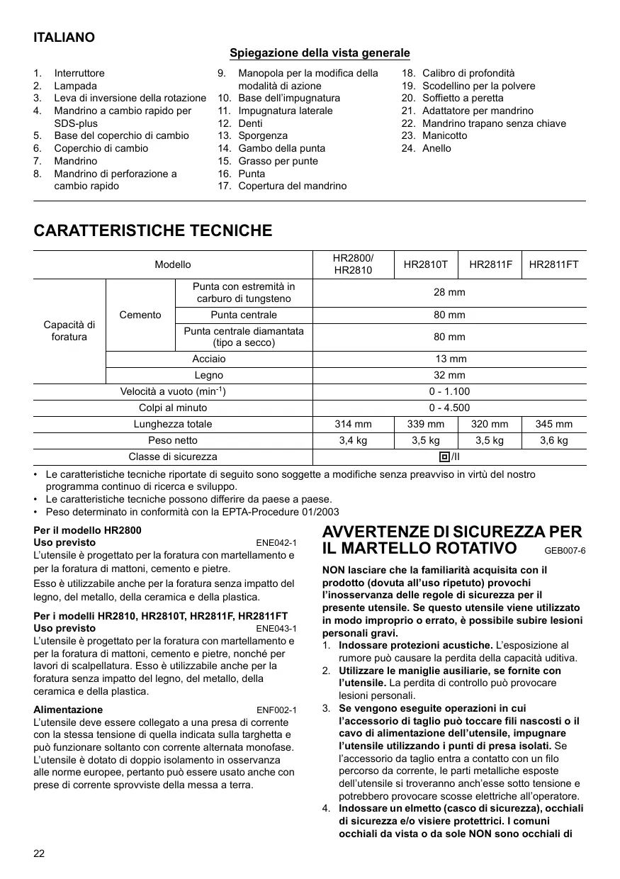 MANUALE UTENTE HR2810T MAKITA